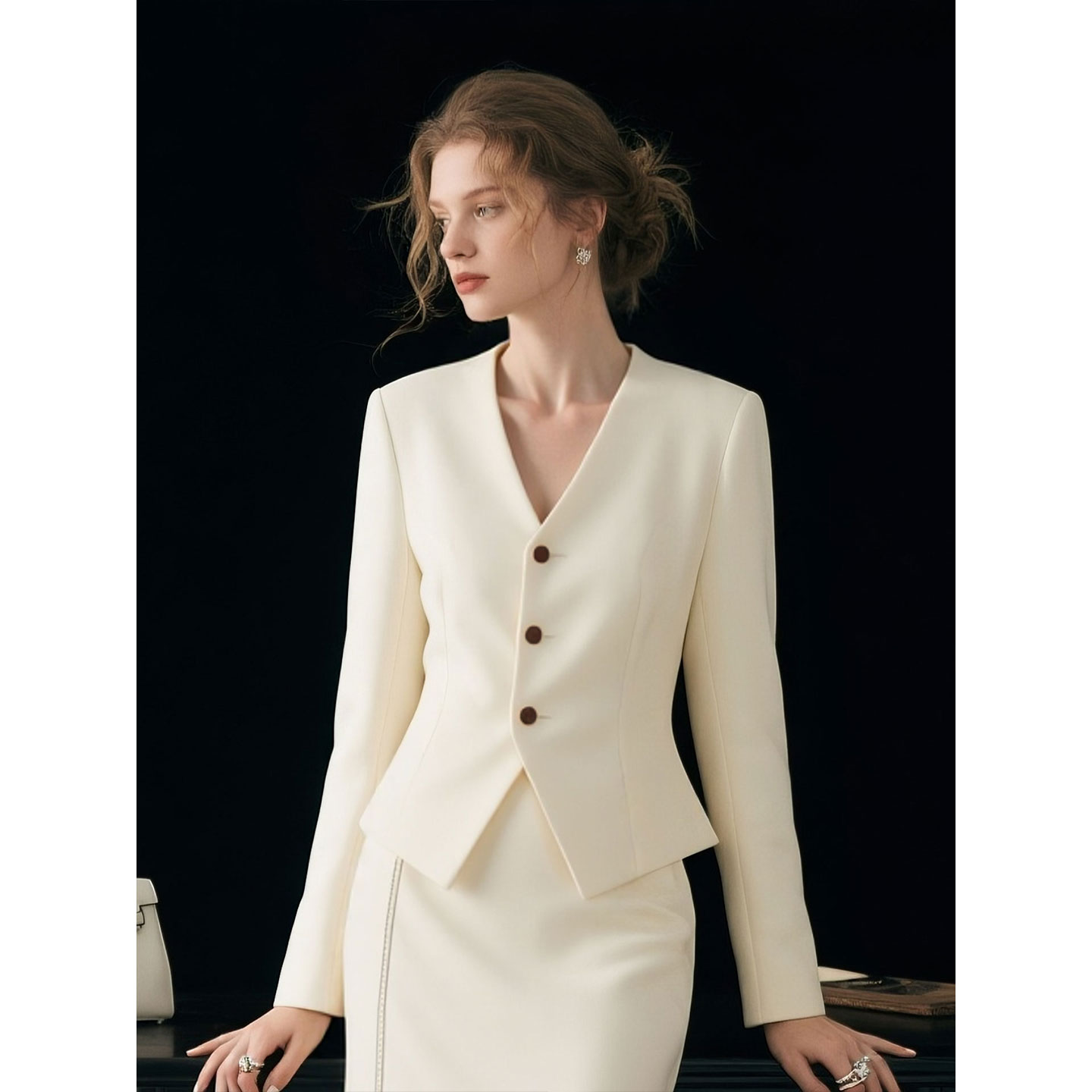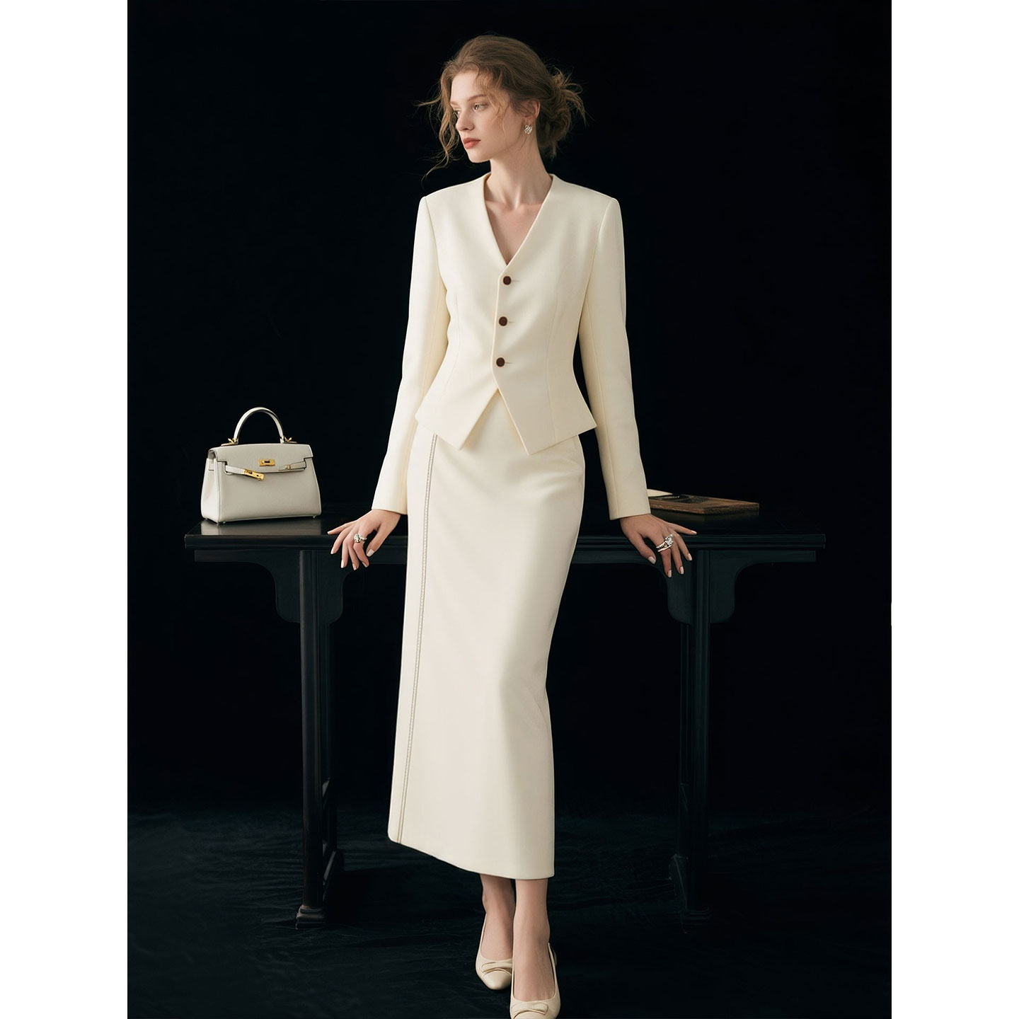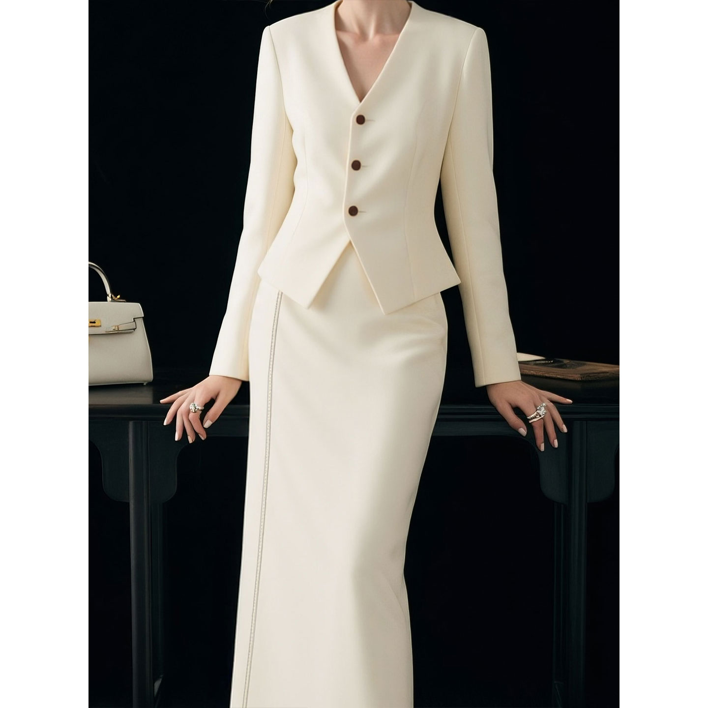 轻熟风气质减龄高腰半身裙两件套 女2025年早秋新款 白色西装 套装
