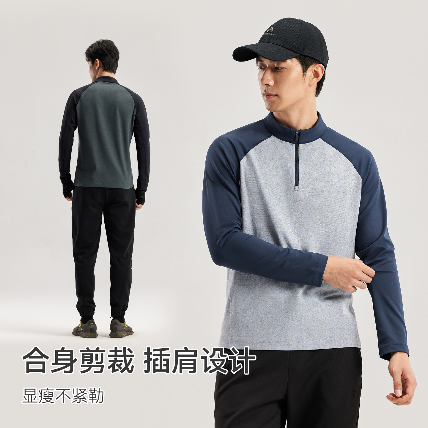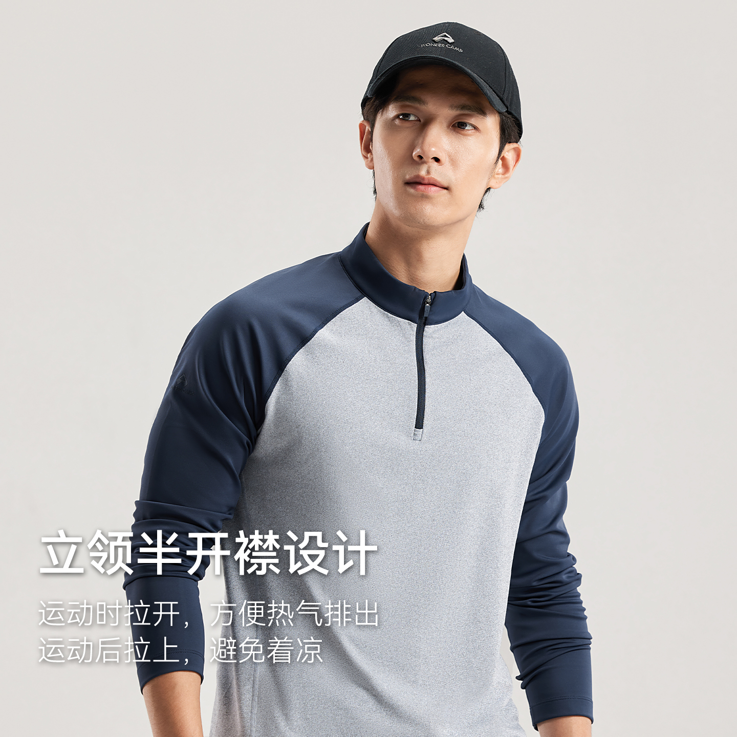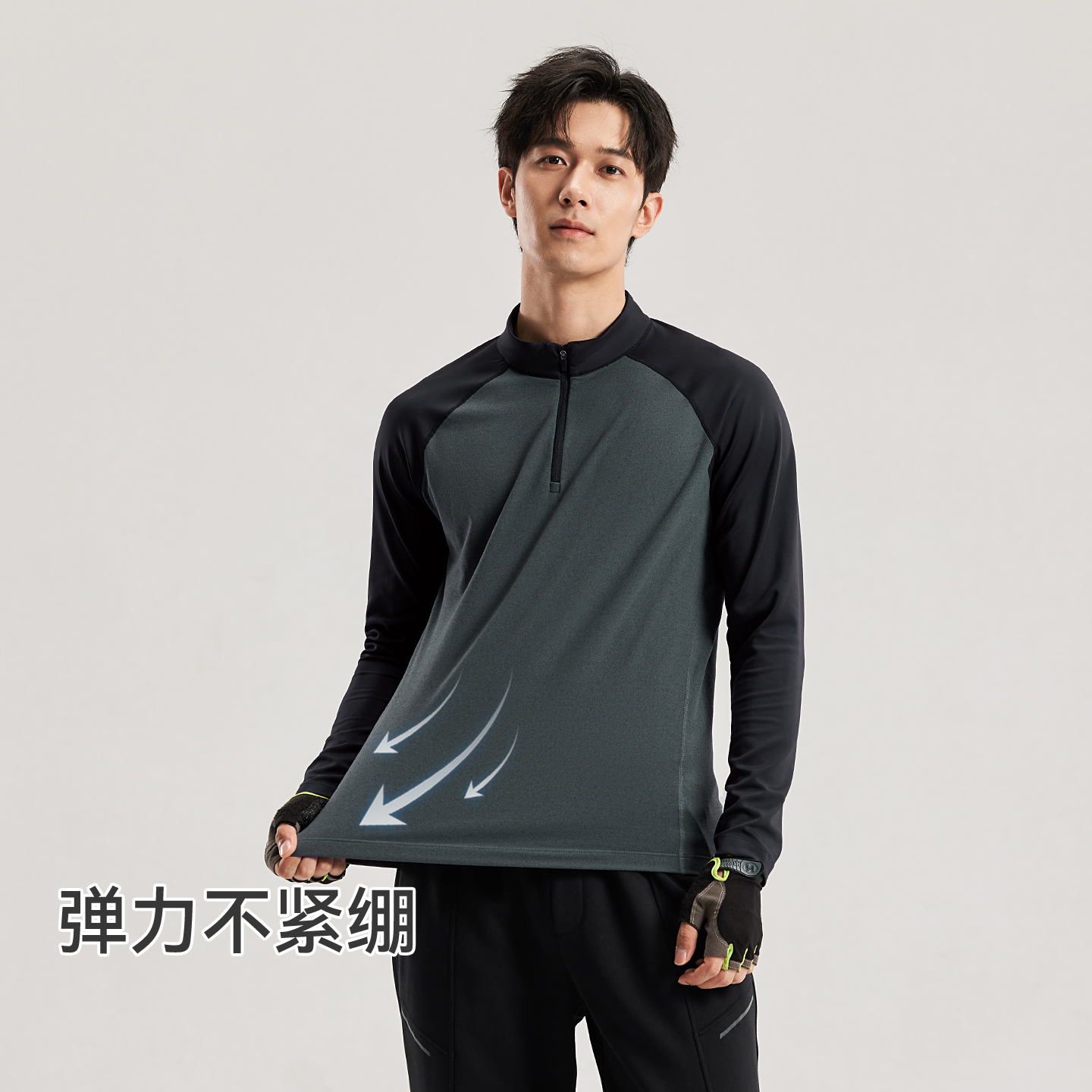 磨毛弹力上衣薄绒速干长袖 秋季 T恤 男款 拓路者半开襟户外运动长袖