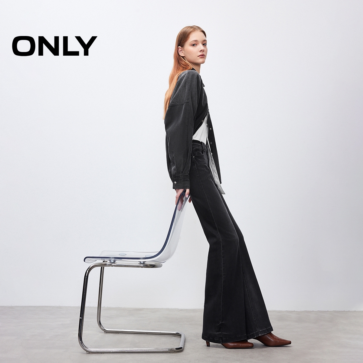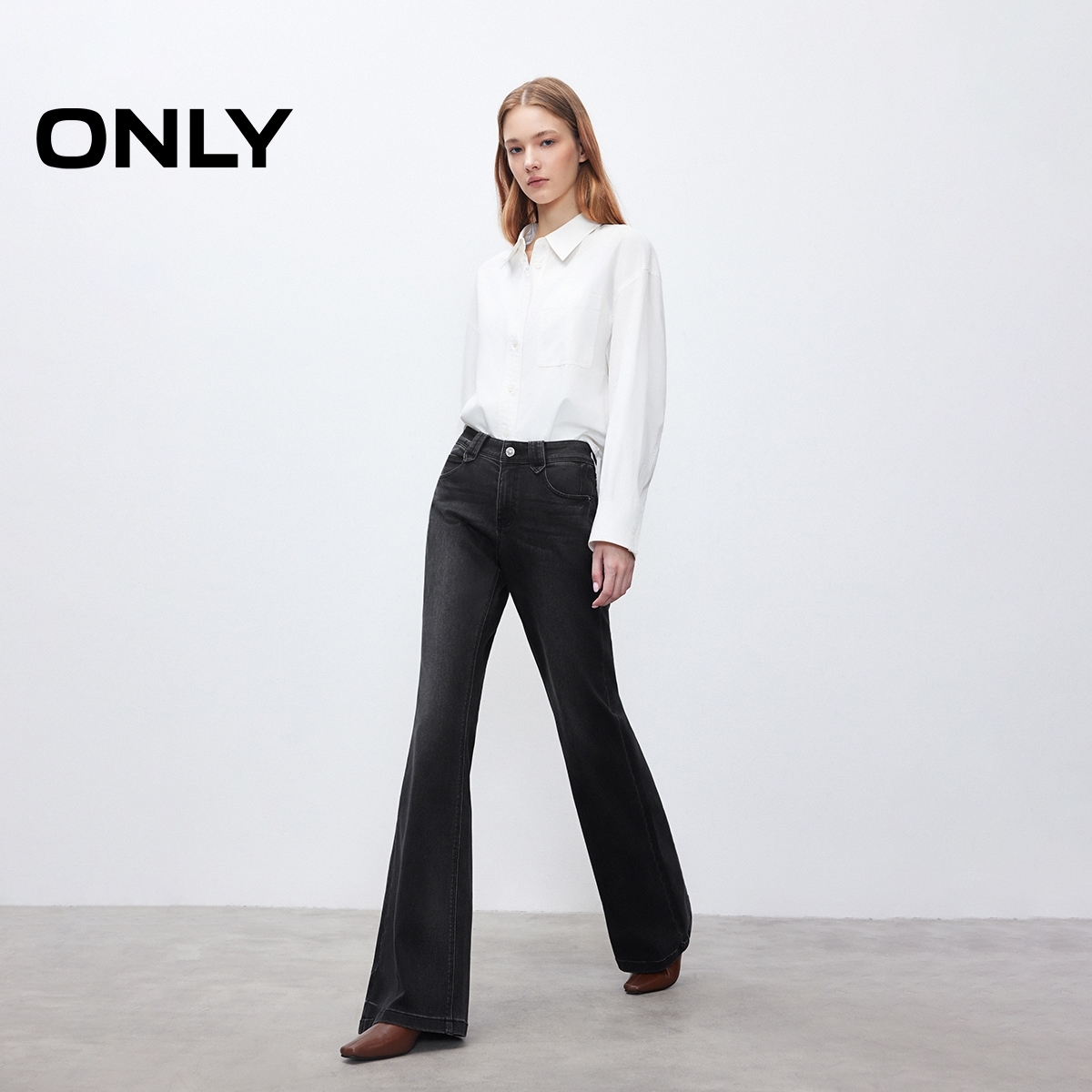 双扣高腰显瘦阔腿长裤 宽松直筒裤 女春秋新款 KZH真维斯黑色牛仔裤