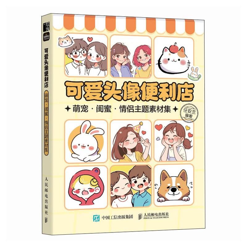 头像绘画设计基础小白素材掌中书便携图册 Q版 彩色 萌宠闺蜜情侣主题素材集 可爱头像便利店