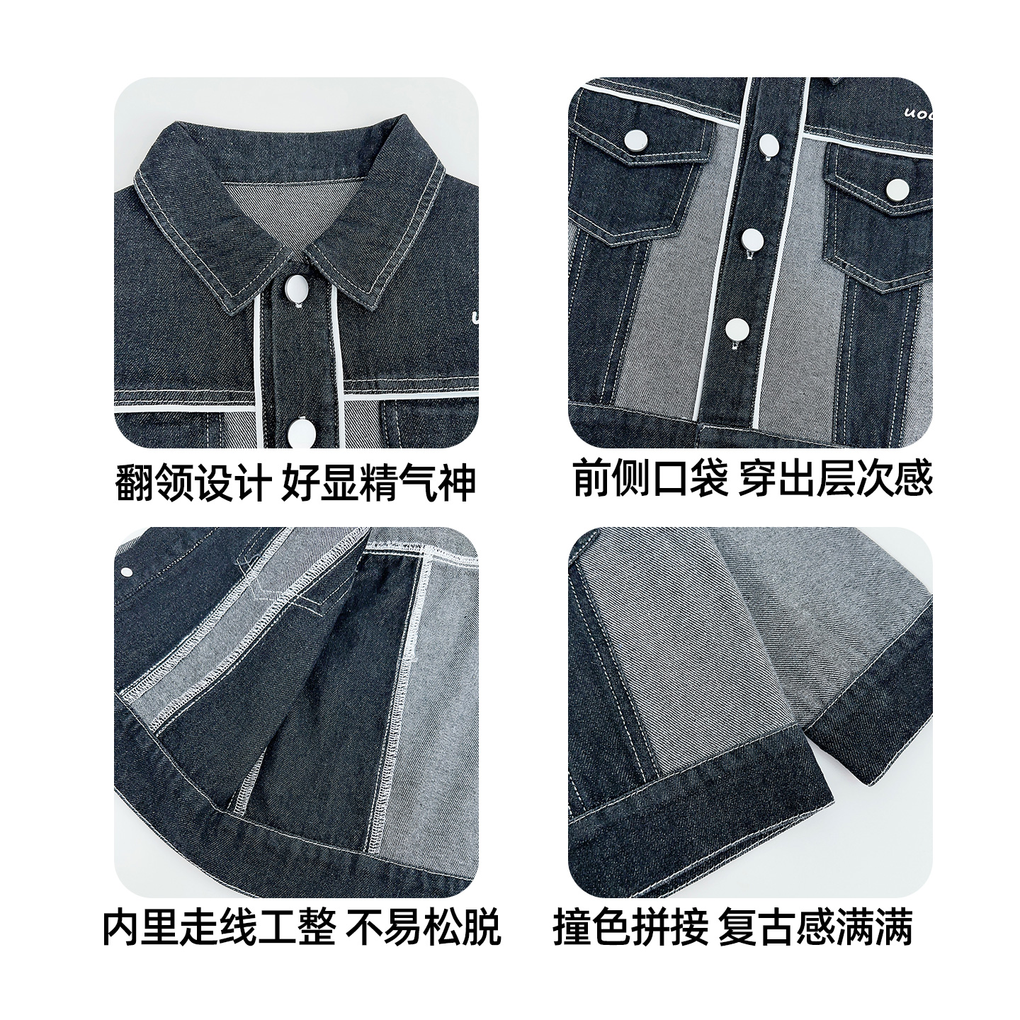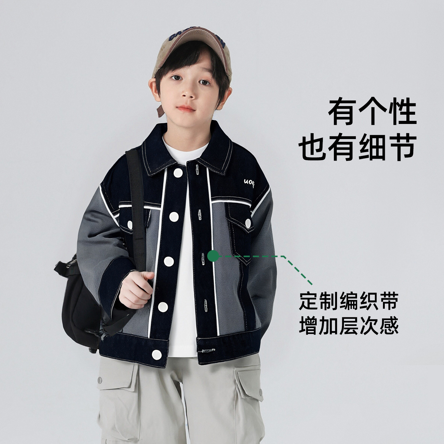 春秋男童外套2025儿童牛仔拼接夹克中大童洋气潮 棉质耐穿