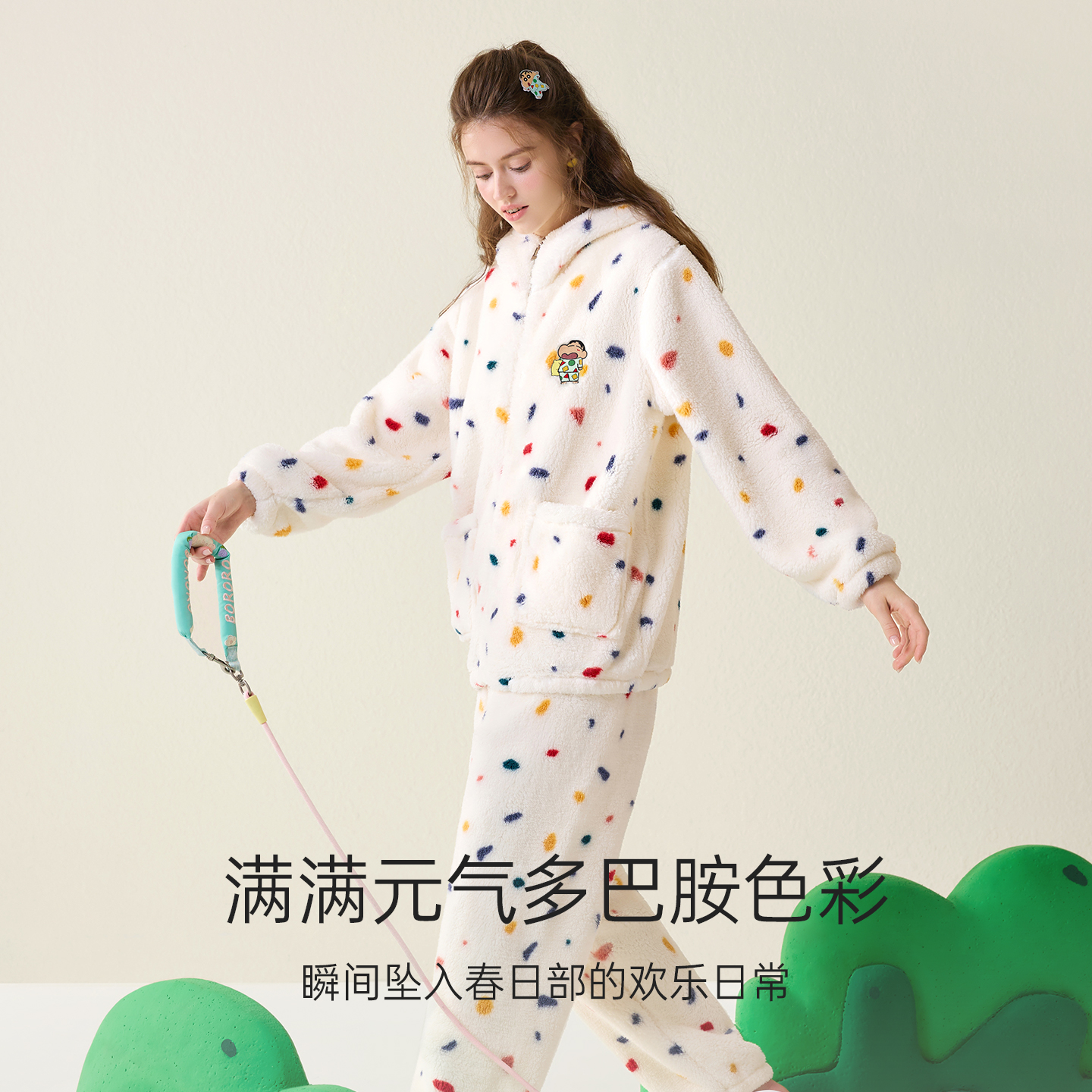 家居服套装 长袖 女高级时尚 睡衣新款 半边绒 秋季 WildRooms明星同款