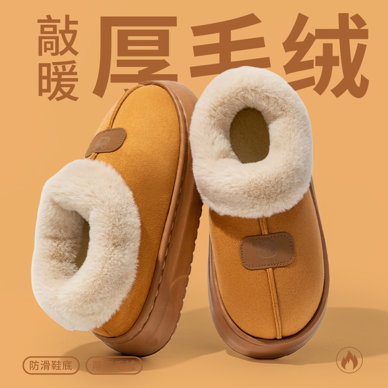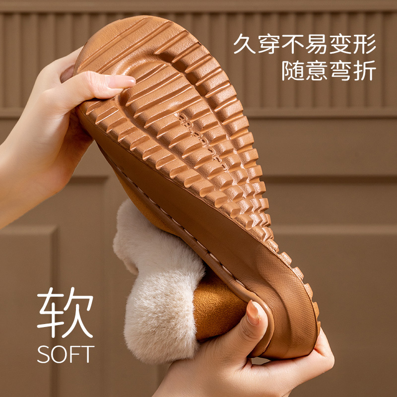 一脚蹬加绒棉拖鞋 厚底勃肯鞋 秋冬爆款 女外穿2025新款 包头毛毛拖鞋