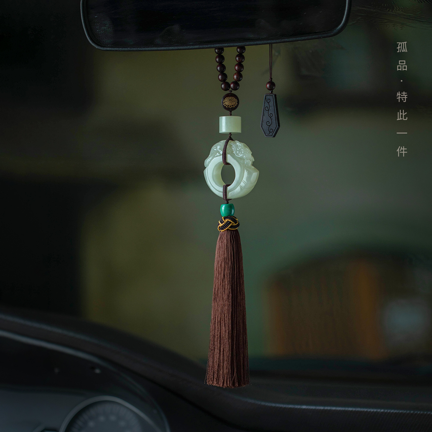 天然和田玉雕刻龙汽车挂件霸气玉石车载挂饰男女一物一证 孤品