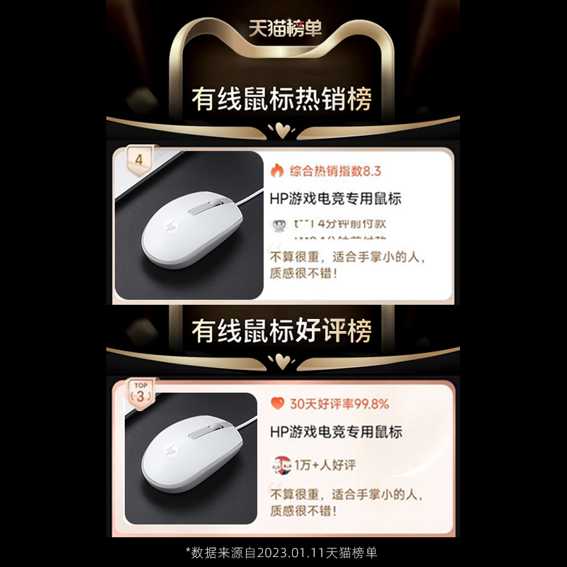 hp惠普官方有线静音鼠标笔记本台式 电脑办公家用游戏电竞专用有声