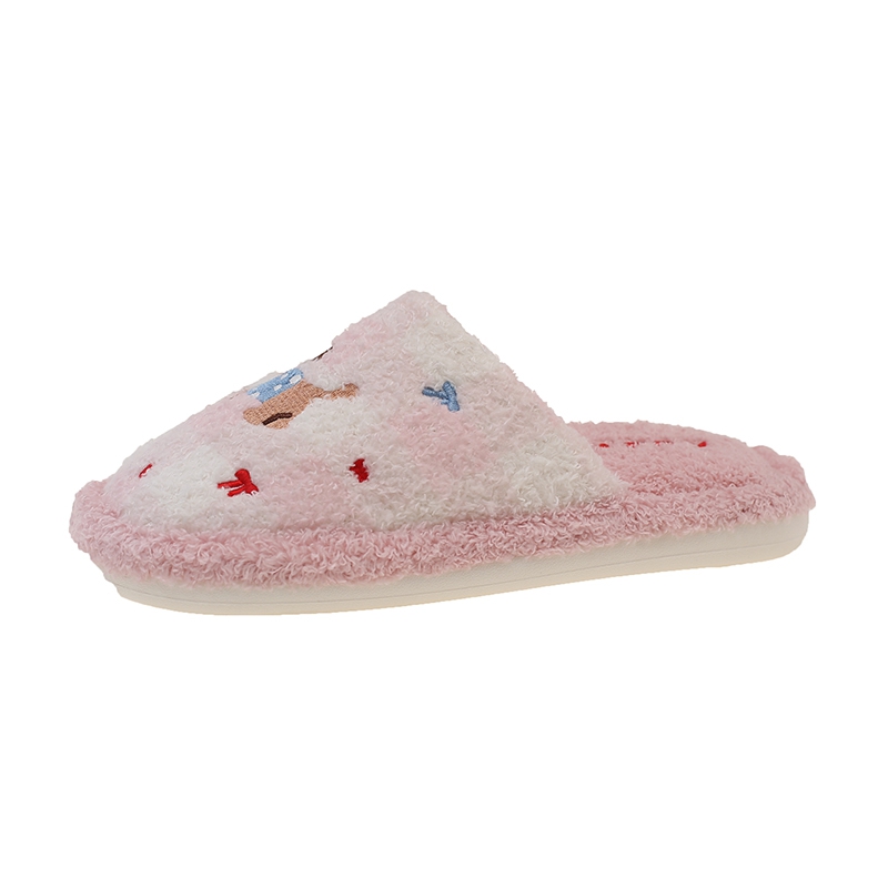 女款 加绒抗菌居家室内棉拖鞋 男冬季 朴西复古格纹情侣家用毛毛拖鞋