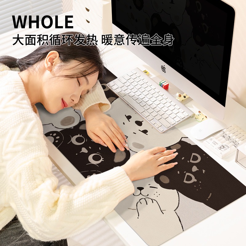 可爱猫咪2025新款 usb电热板暖手桌垫 加热鼠标垫左侧开关卡通超大发热暖桌垫防水办公室垫桌面电脑键盘垫冬季