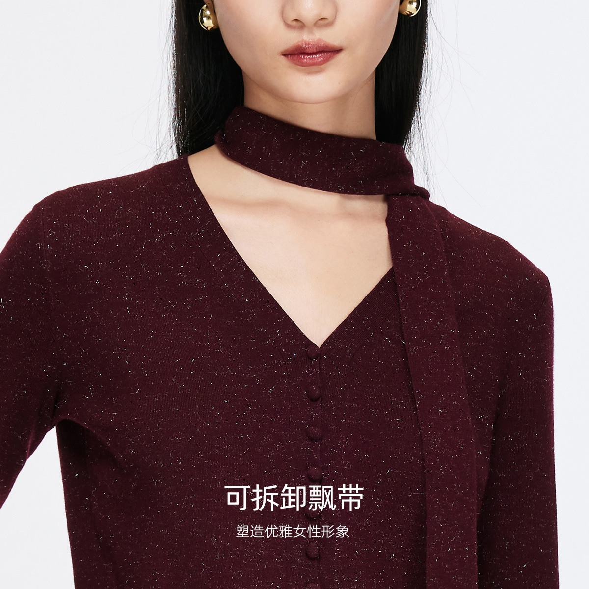 含绵羊毛可拆卸飘带优雅开衫 25冬新款 325424015 Moda针织衫 Vero