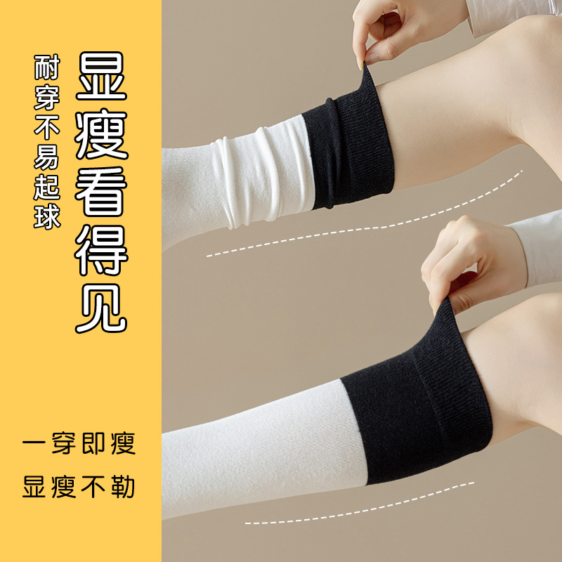 小腿袜子女春秋季 JK潮 过膝袜纯棉中筒袜微压显瘦无骨长筒长袜夏季