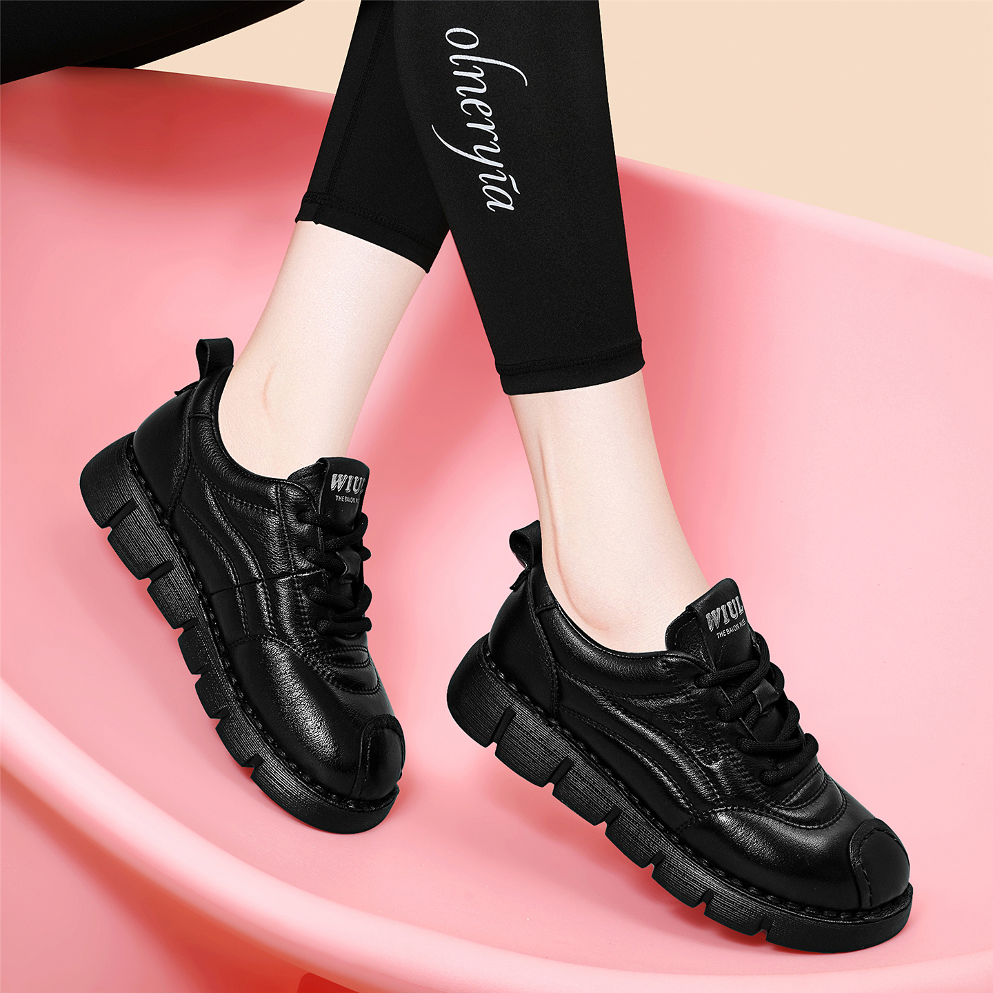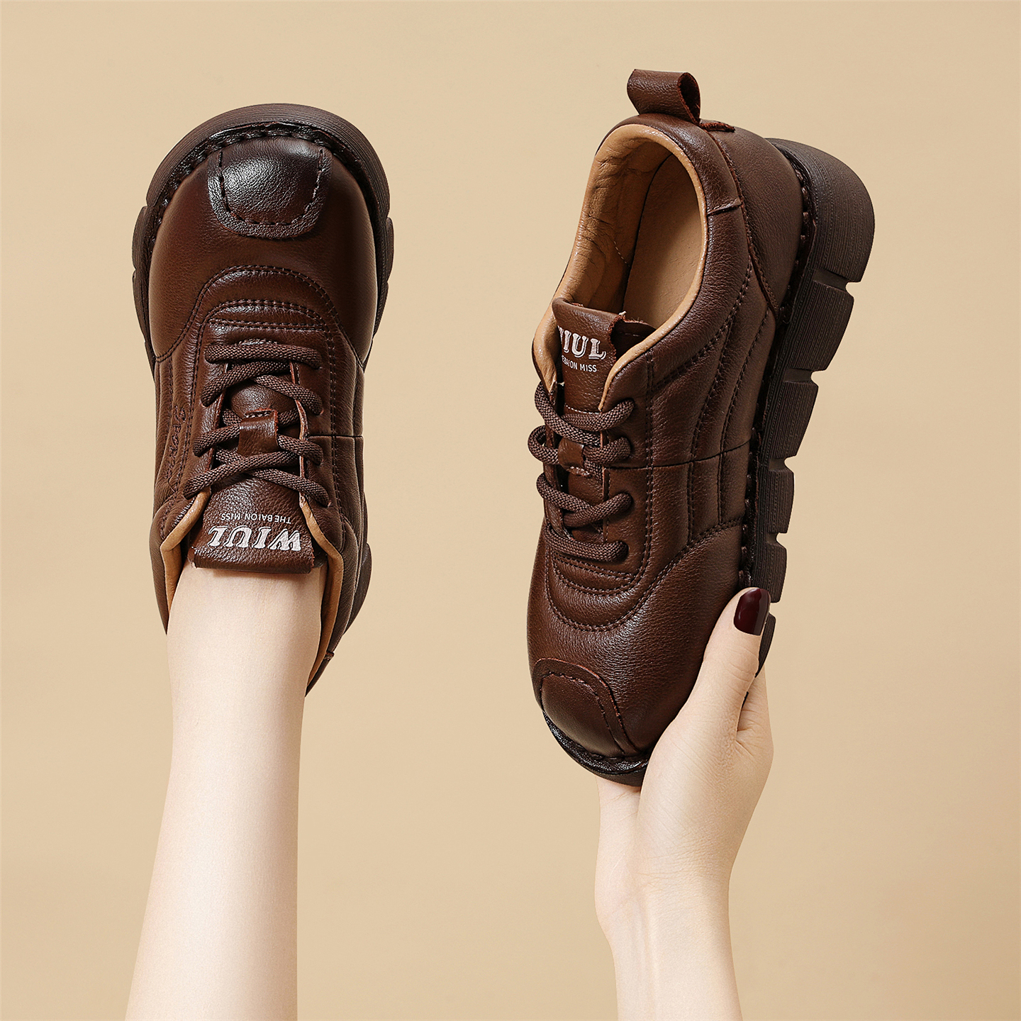 新款 百搭透气轻便运动鞋 女鞋 舒适软底妈妈鞋 复古休闲皮鞋 2025秋季