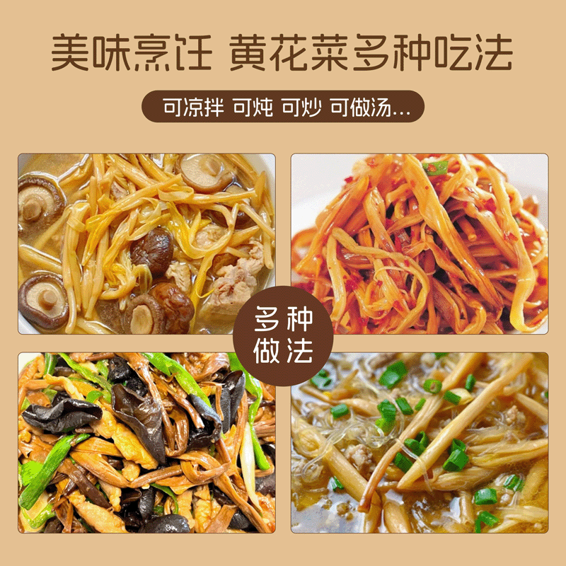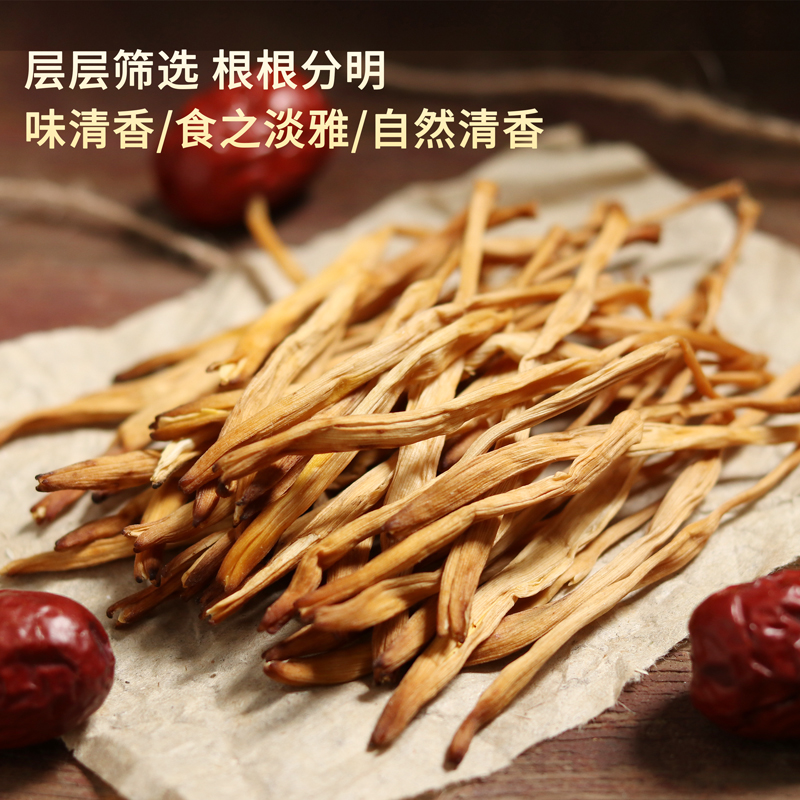 黄花菜新货晒干金针菜凉拌菜山珍干菜黑木耳香菇炒菜煲汤素食美味