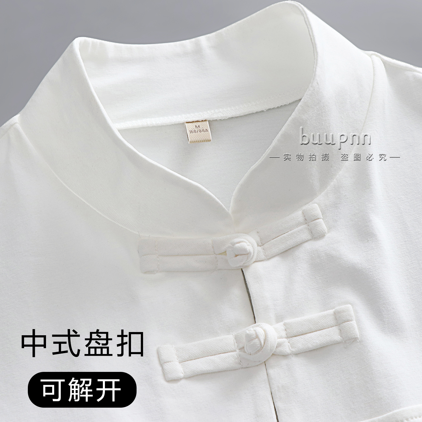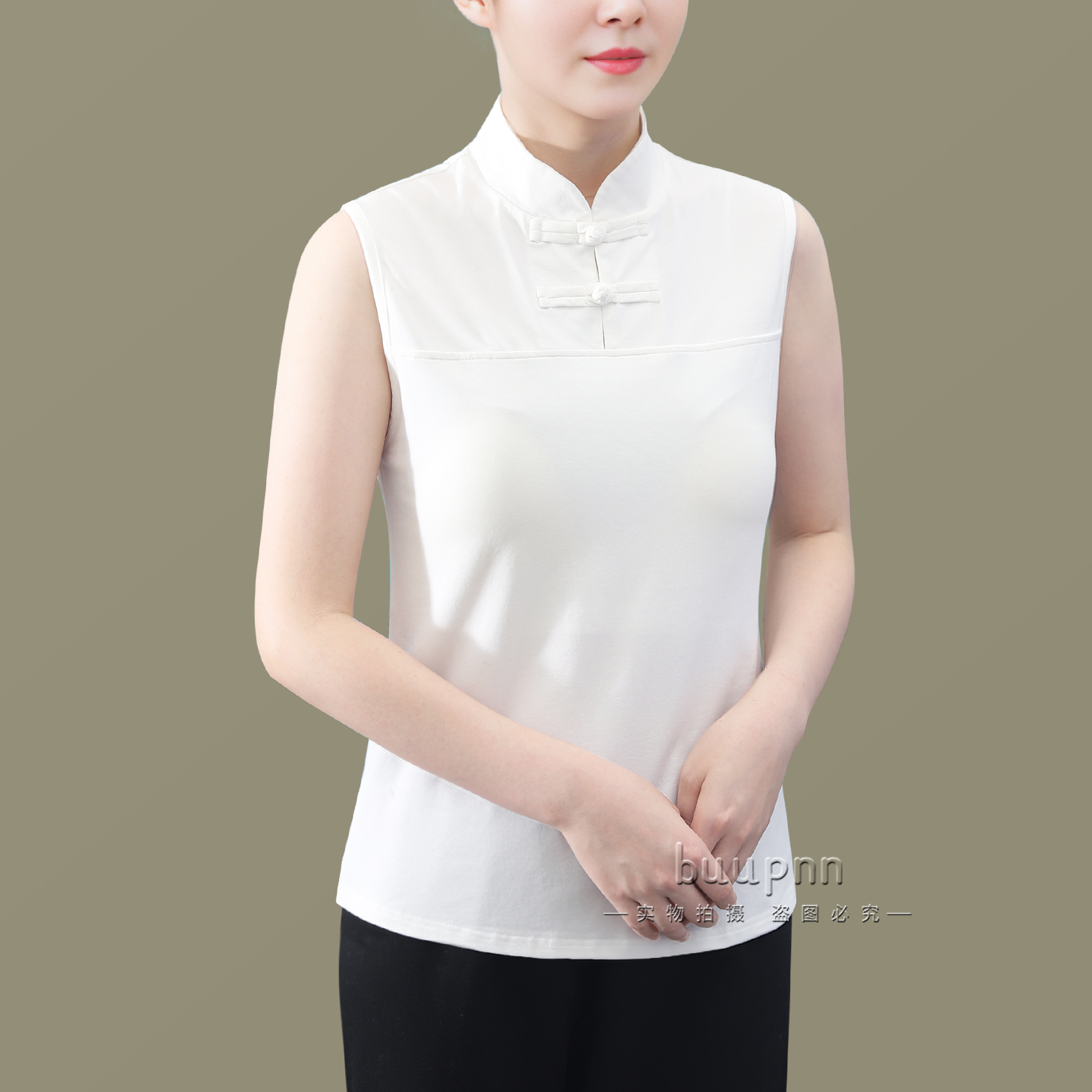 棉 白色打底汗衫 中式 盘扣带胸垫背心立领护颈宽肩带无袖