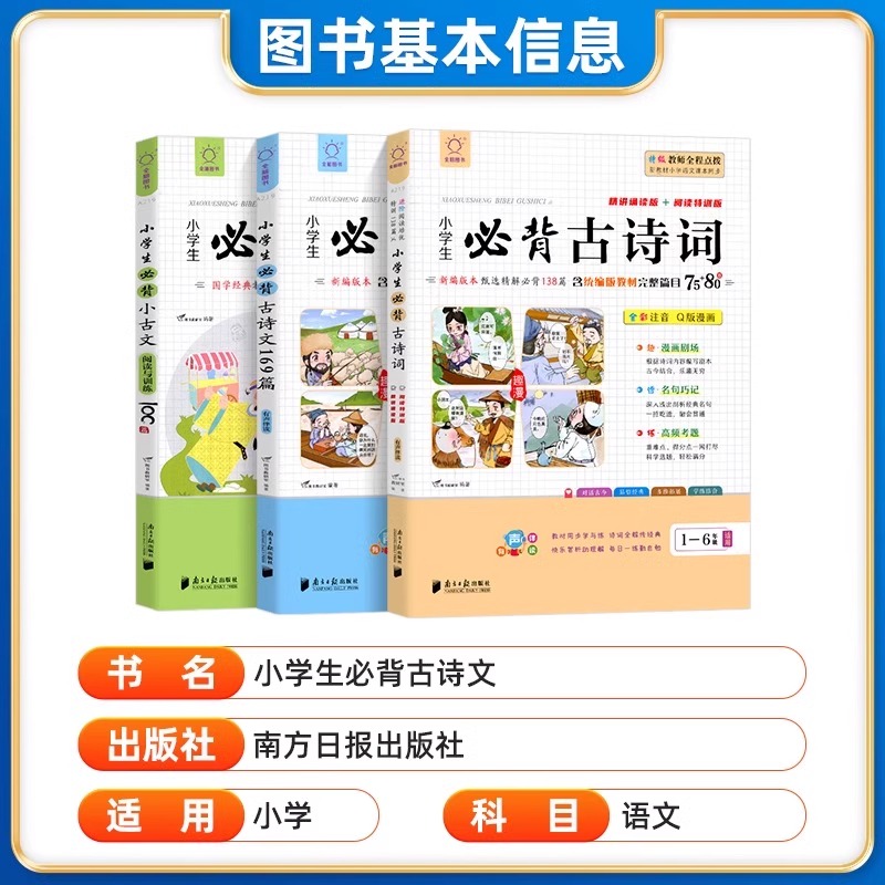 阅读与训练二合一 正版 169篇小学生小古文古诗文100篇漫画注音思维导图版 80首 艾宾浩斯记忆法速背大全 小学生必背古诗词75