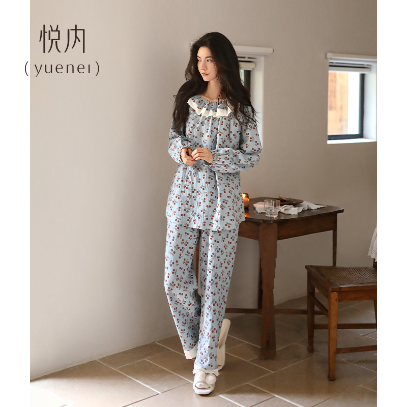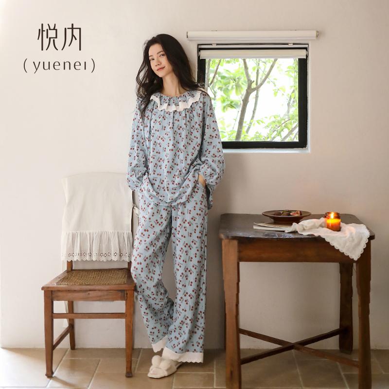 女士睡衣居家服 家居服套装 有棵树植物停螨纯棉睡衣女款 春秋长袖