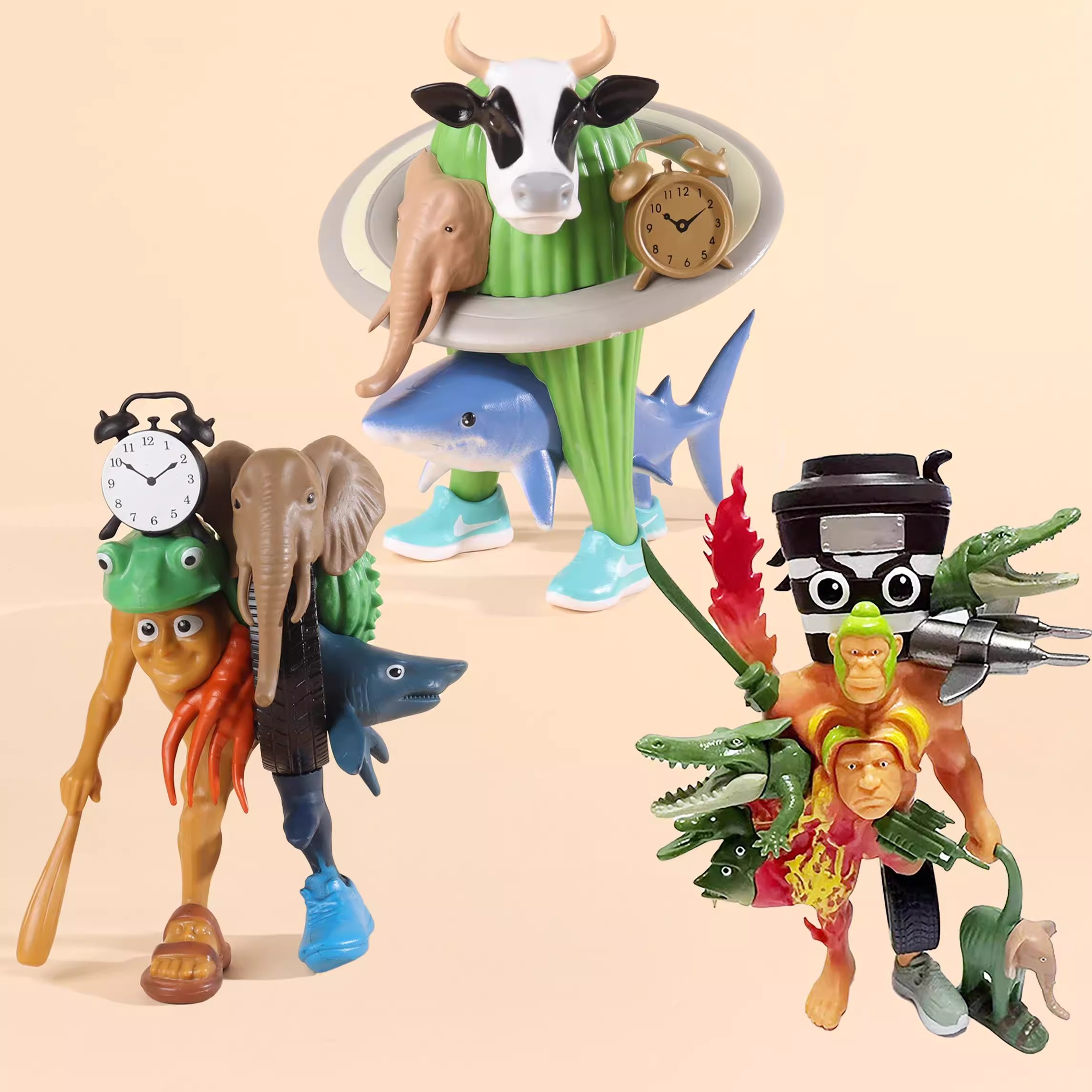 外国山海经融合怪神兽玩具国外美国ai手办摆件人偶全套模型木棍人