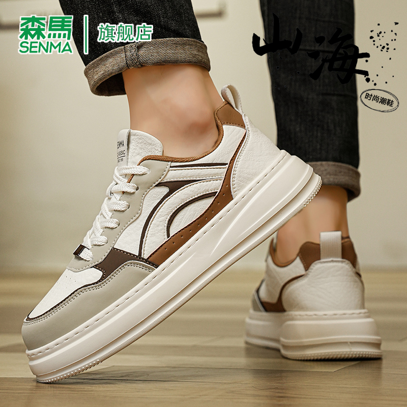 男款 厚底耐磨真皮轻奢潮鞋 2025秋季 休闲鞋 子 运动轻便时尚 森马板鞋