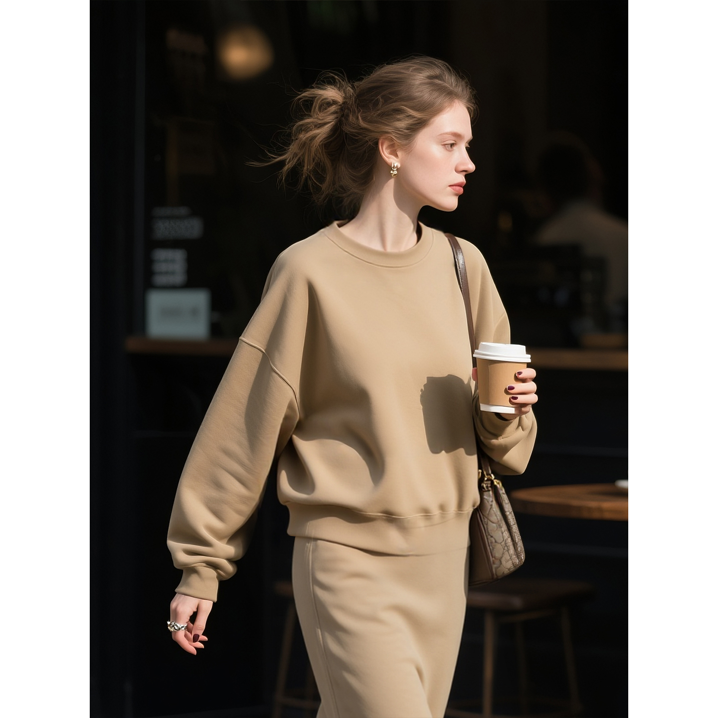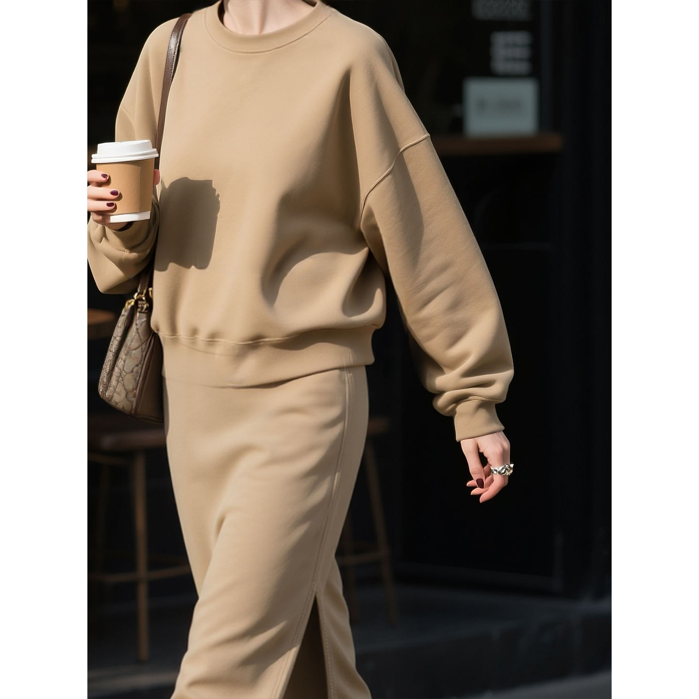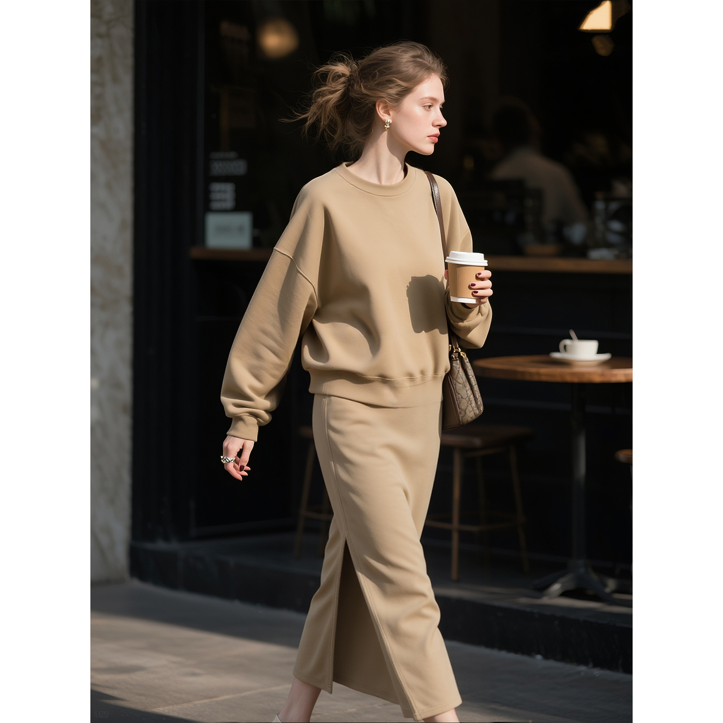 慵懒风卫衣高腰半身裙两件套 新款 卡其色早秋休闲套装 女2025年秋季