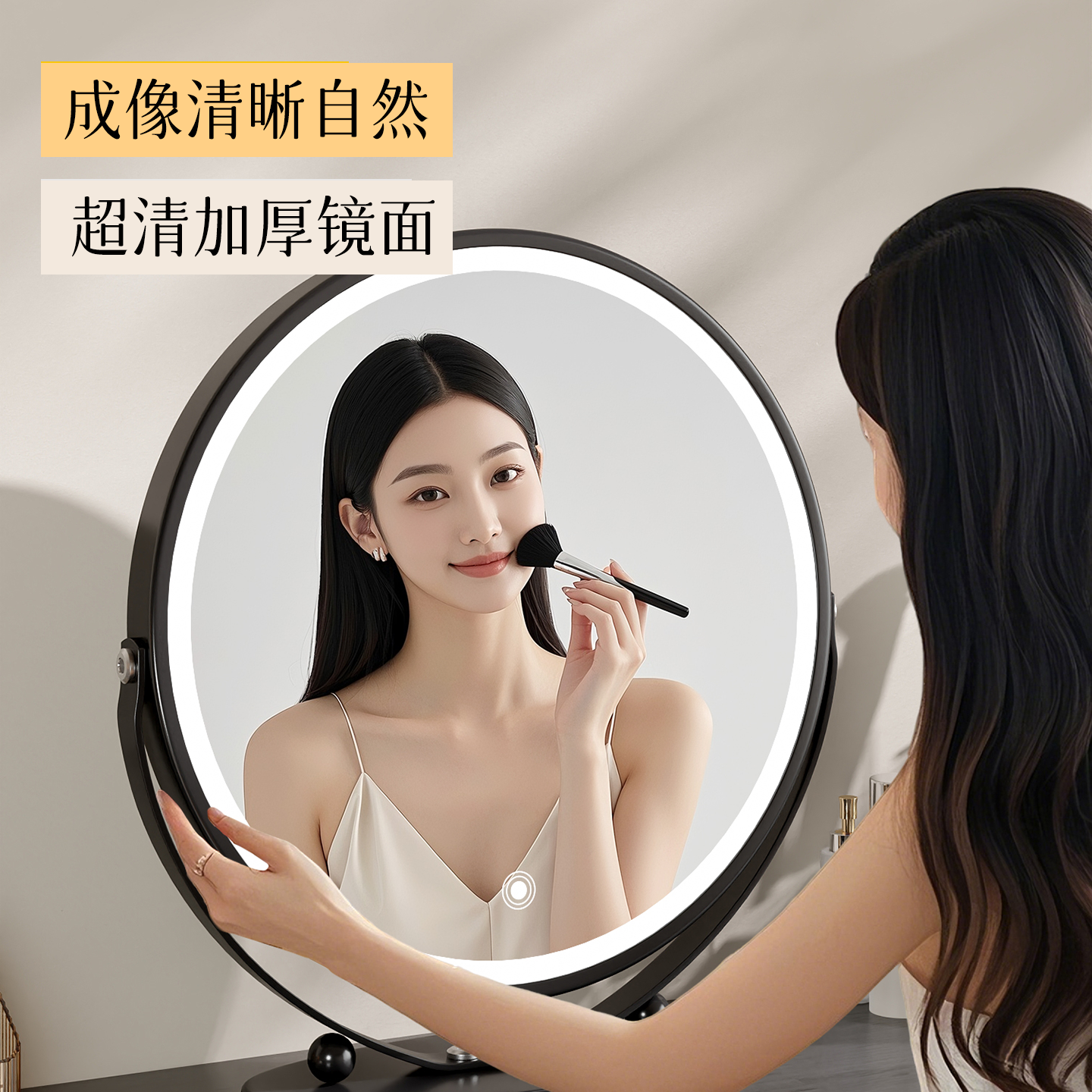 梳妆台镜子led带灯台式 桌面中古风高级感卧室可旋转梳妆化妆镜
