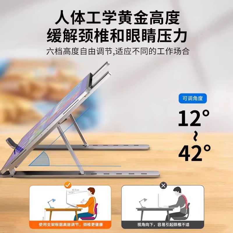 适用于拯救者笔记本电脑支架托架桌面增高散热折叠便携支撑立式 支架铝合金硅胶防滑垫平板通用多档调节办公