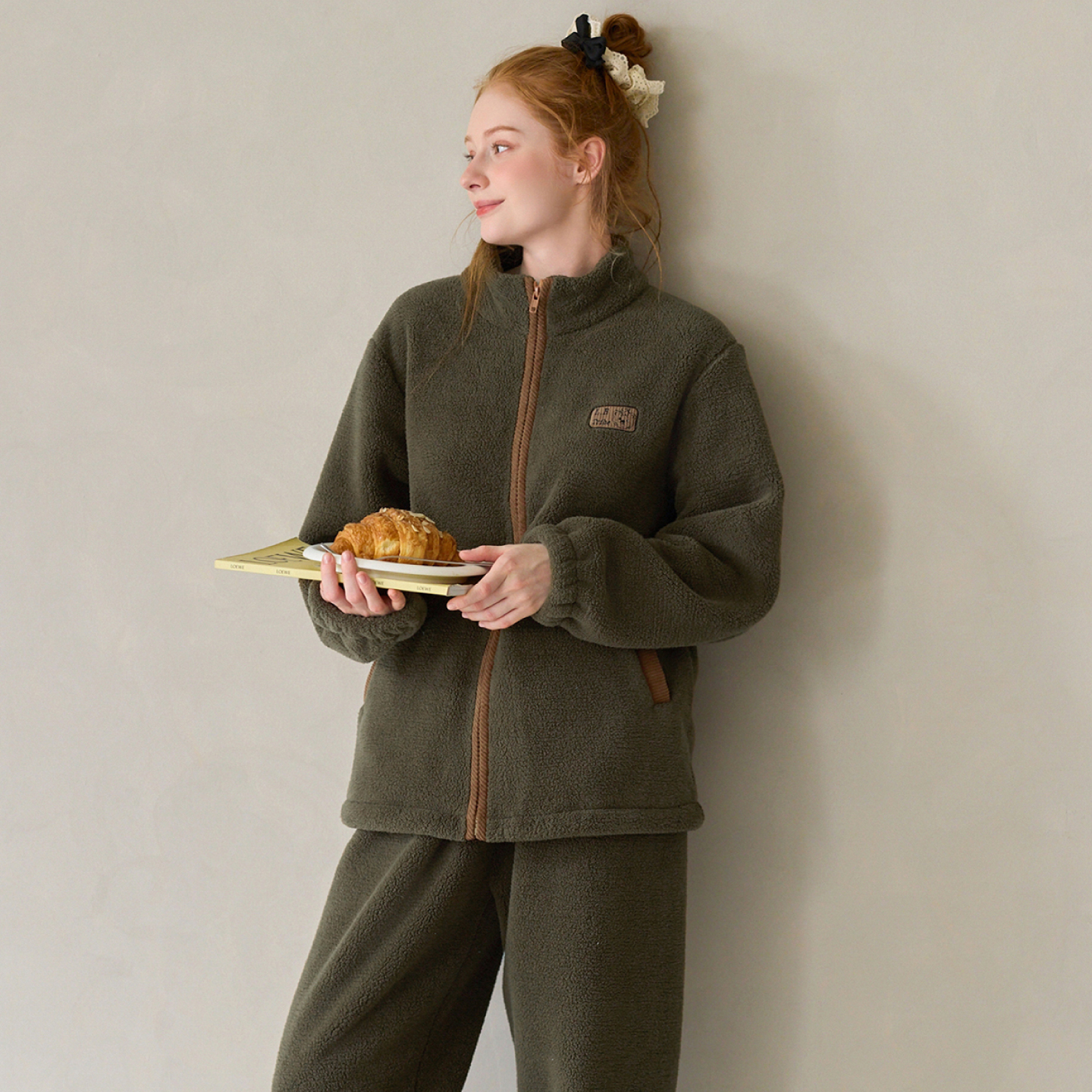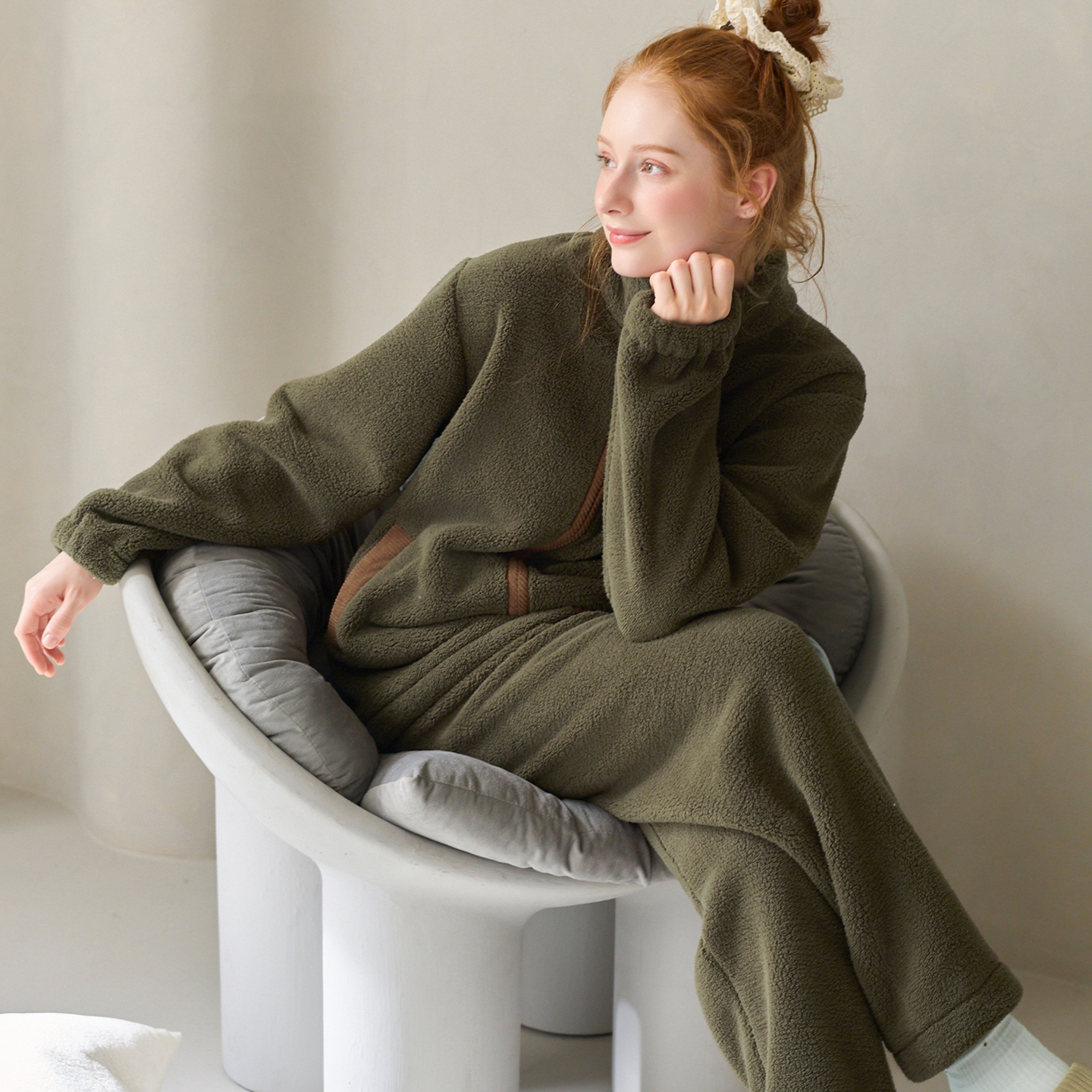 芬腾拉链立领珊瑚绒睡衣女秋冬加绒加厚外穿家居服套装 2025年新款