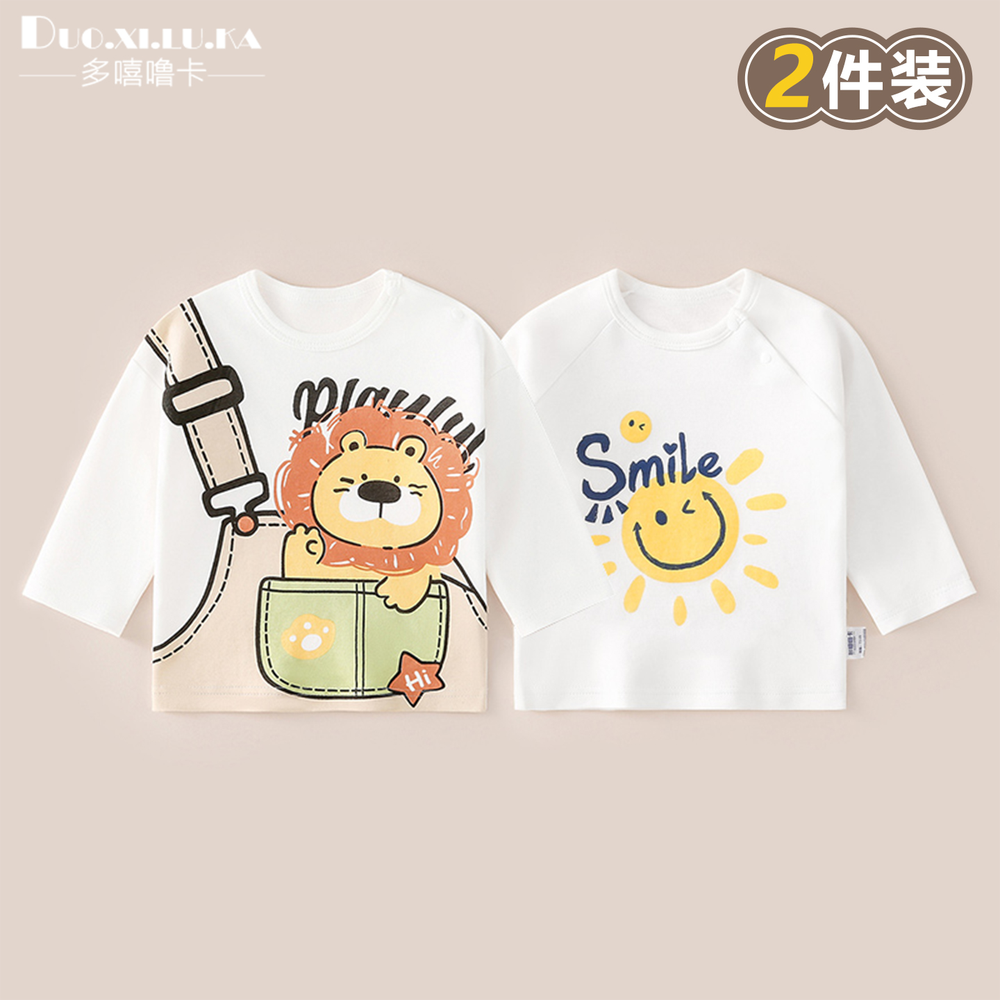 男童秋季 2件装 上衣纯棉女童打底衫 t恤婴儿秋装 衣服洋气 宝宝长袖