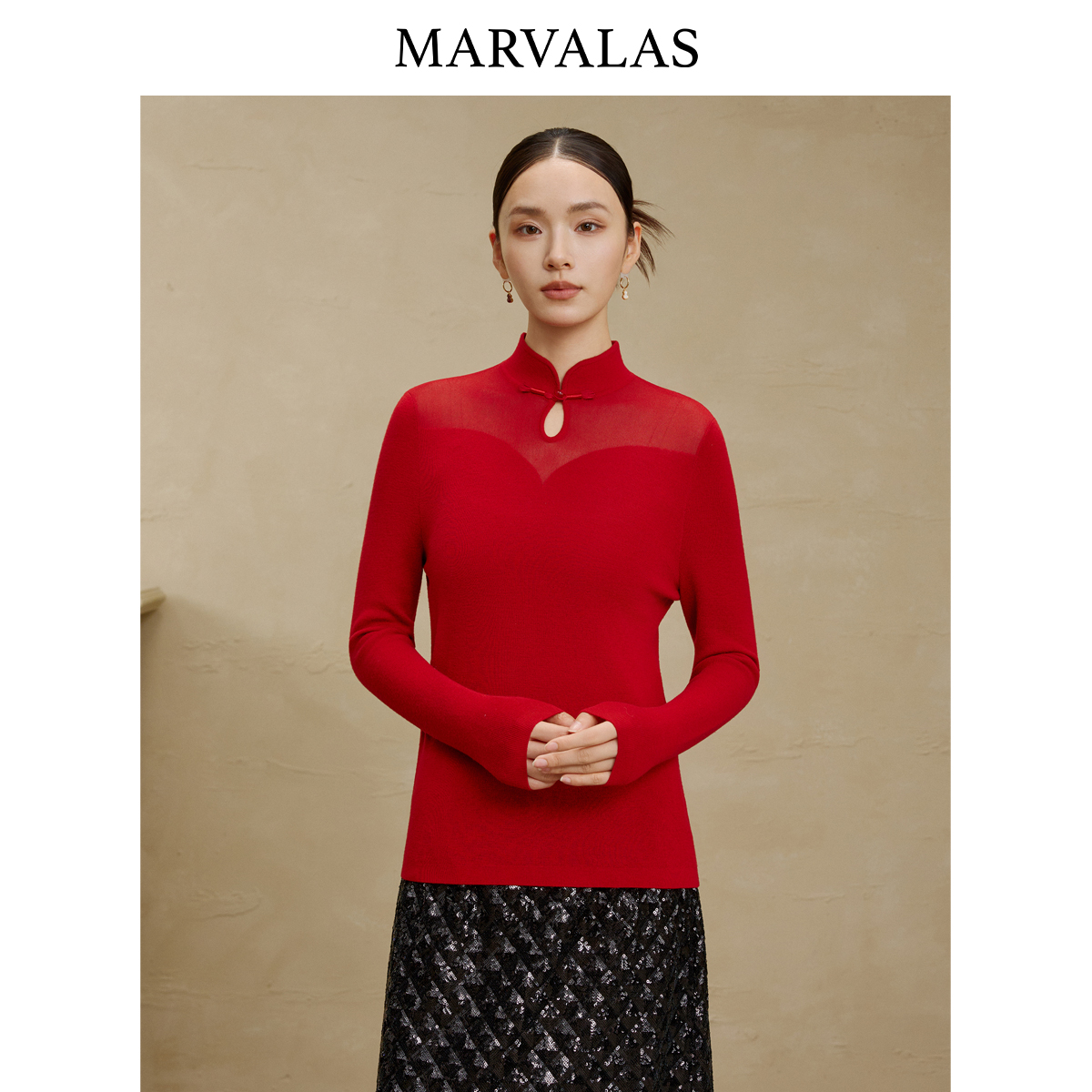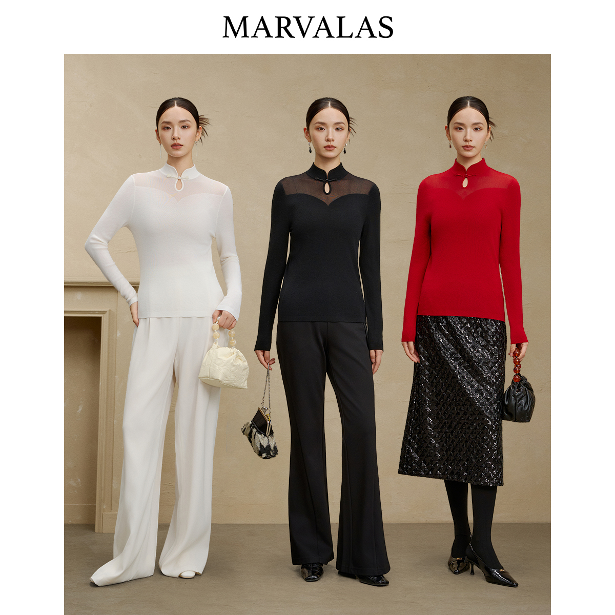新中式 新款 盘扣打底衫 修身 曼德诗100%绵羊毛套头衫 针织衫 2025冬季