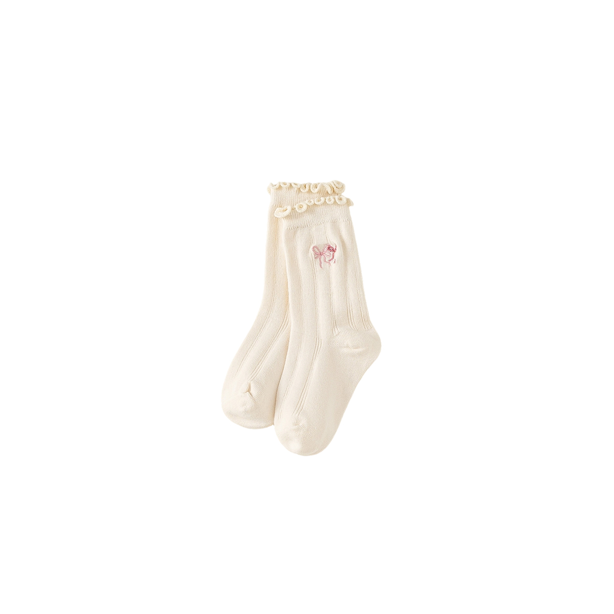 INSbobo女童袜子秋季 宝宝童袜潮 儿童纯色花边中筒袜2025春秋新款