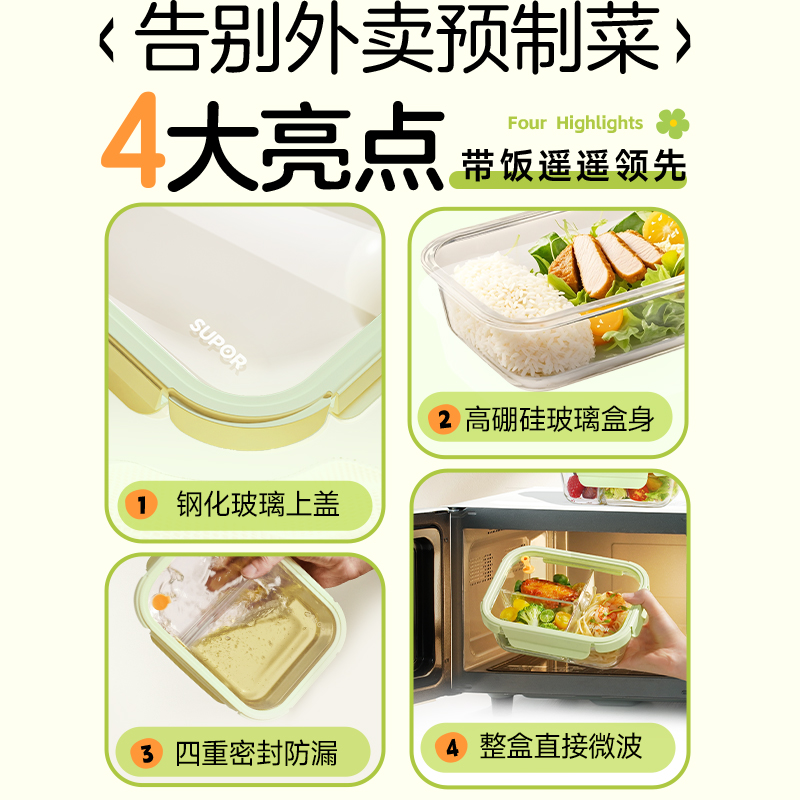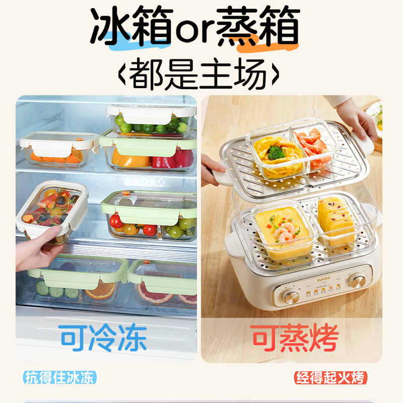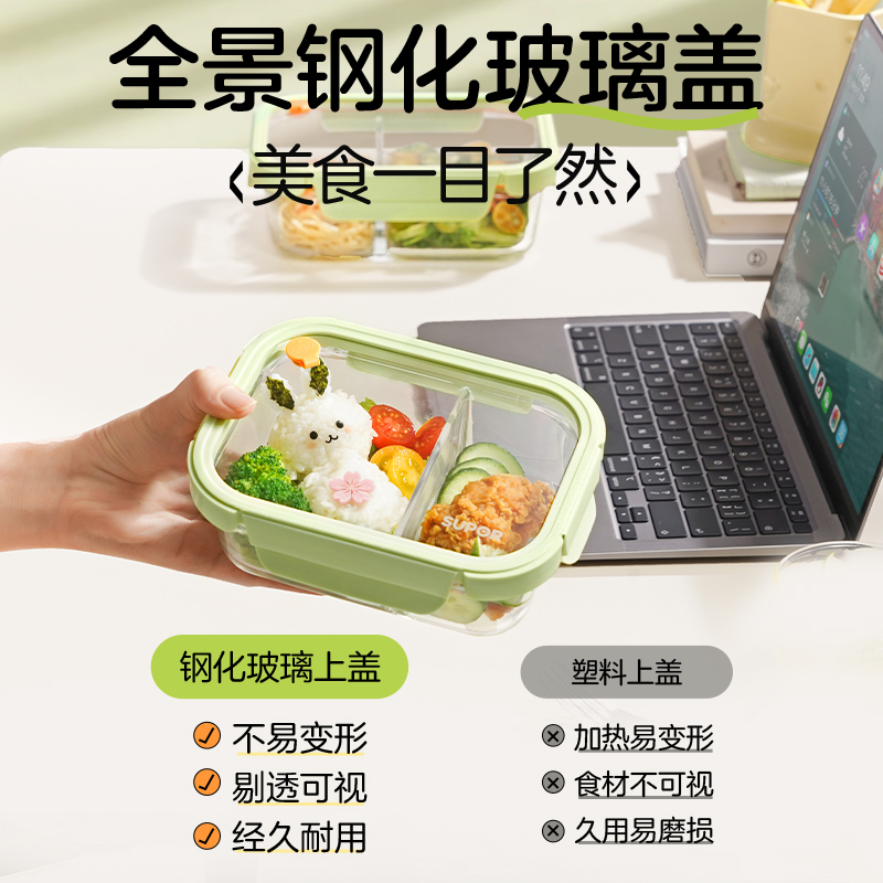 苏泊尔玻璃饭盒微波炉加热专用饭盒食品级保鲜盒上班族密封餐盒碗