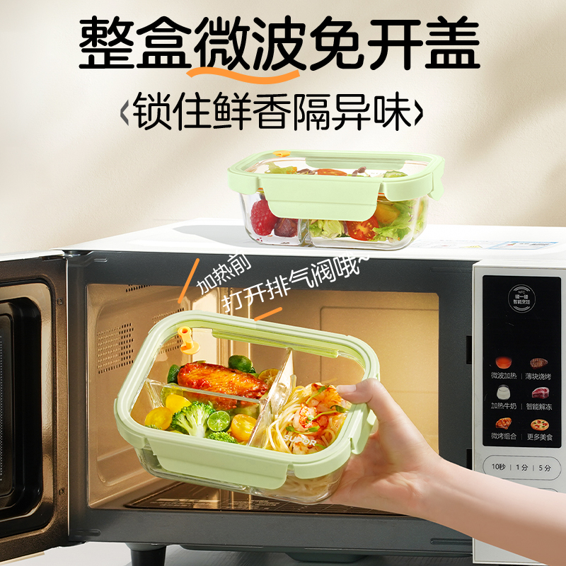 九阳玻璃饭盒微波炉加热专用碗保鲜盒水果便当盒食品级带饭餐盒