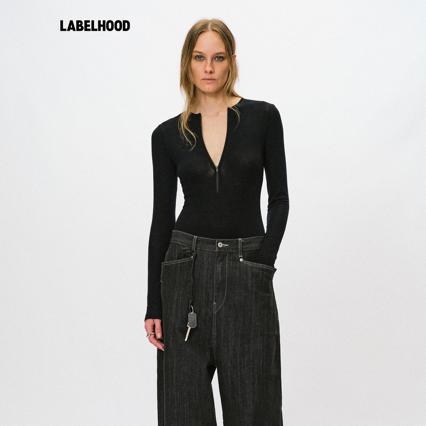 Liegee 女装 蕾虎DEEPLY 新款 上衣 V领羊毛拉链T恤2025秋季
