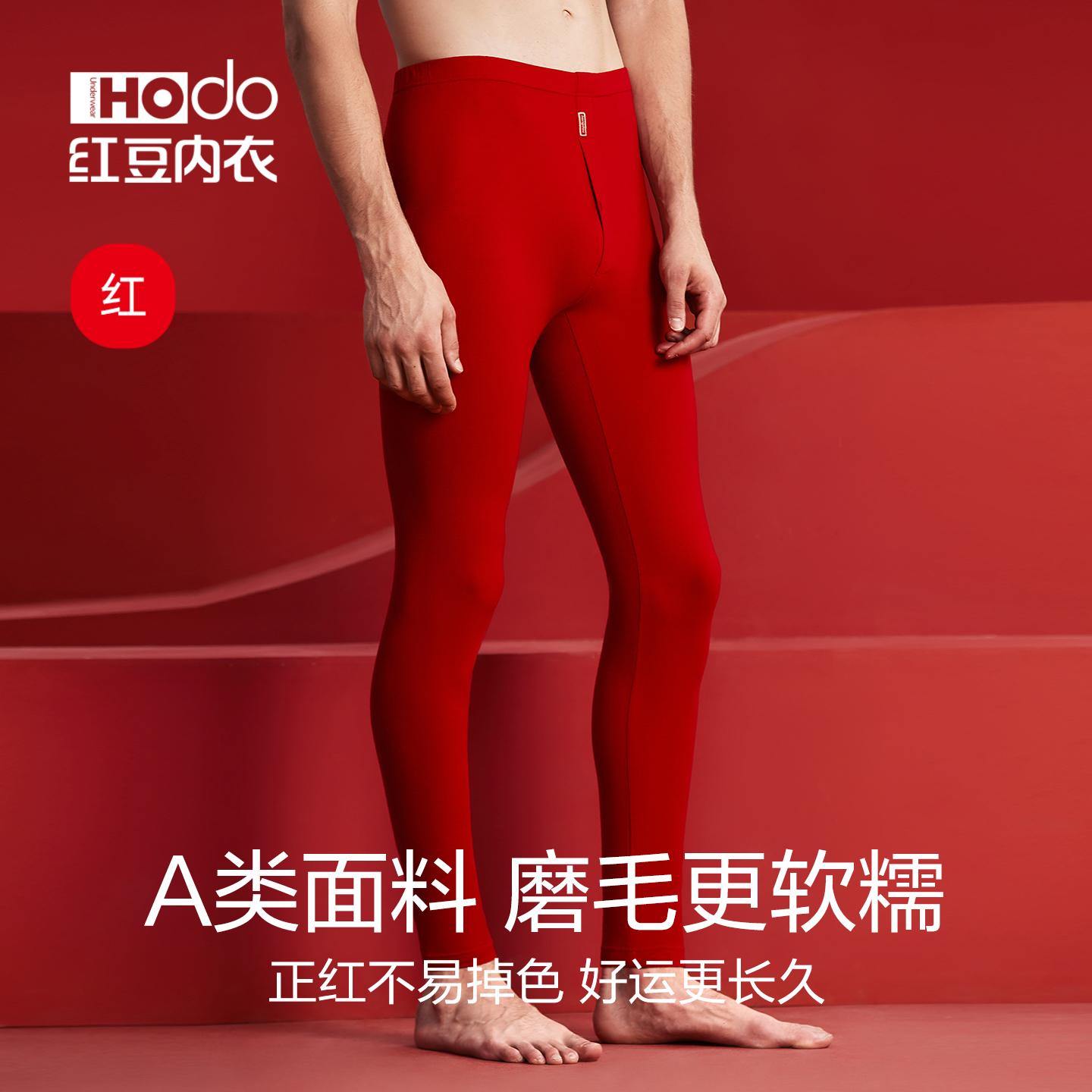 打底裤 内搭线裤 本命年男女士A类磨毛马年保暖裤 红豆情侣红色秋裤