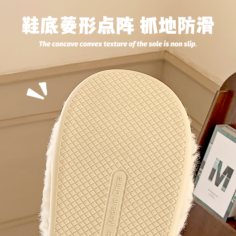 毛绒加绒加厚毛毛拖鞋 室内居家用防滑保暖月子鞋 男冬 女冬季 棉拖鞋