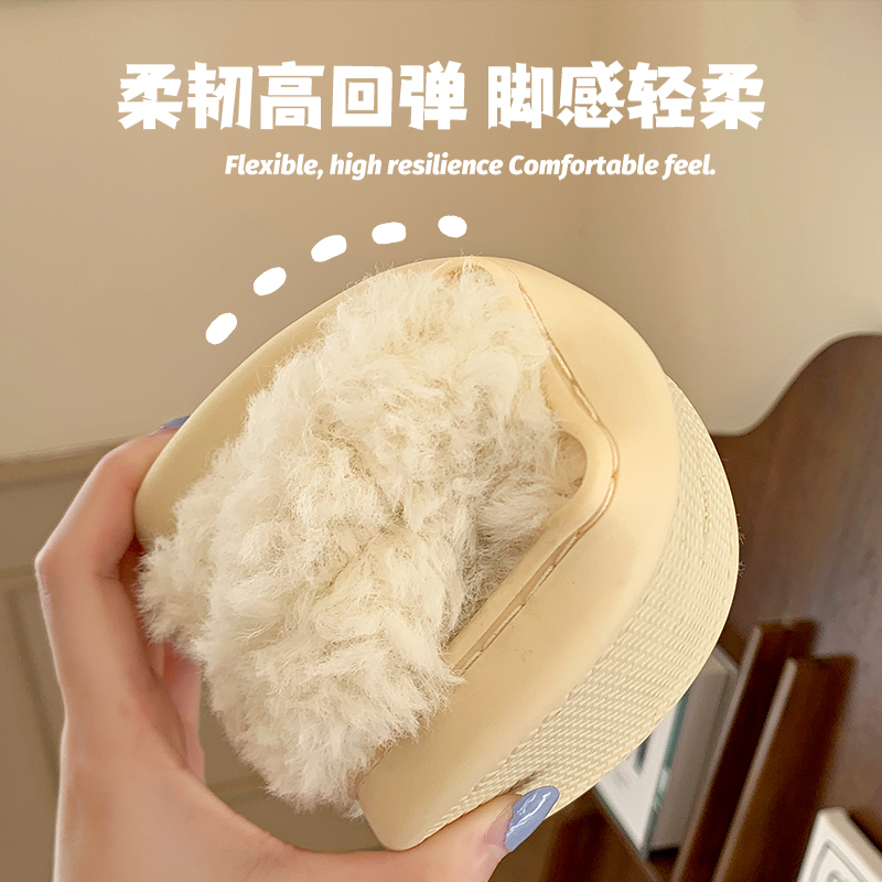 家居室内保暖毛毛绒厚底月子拖鞋 2025新款 女士秋冬季 踩屎感棉拖鞋