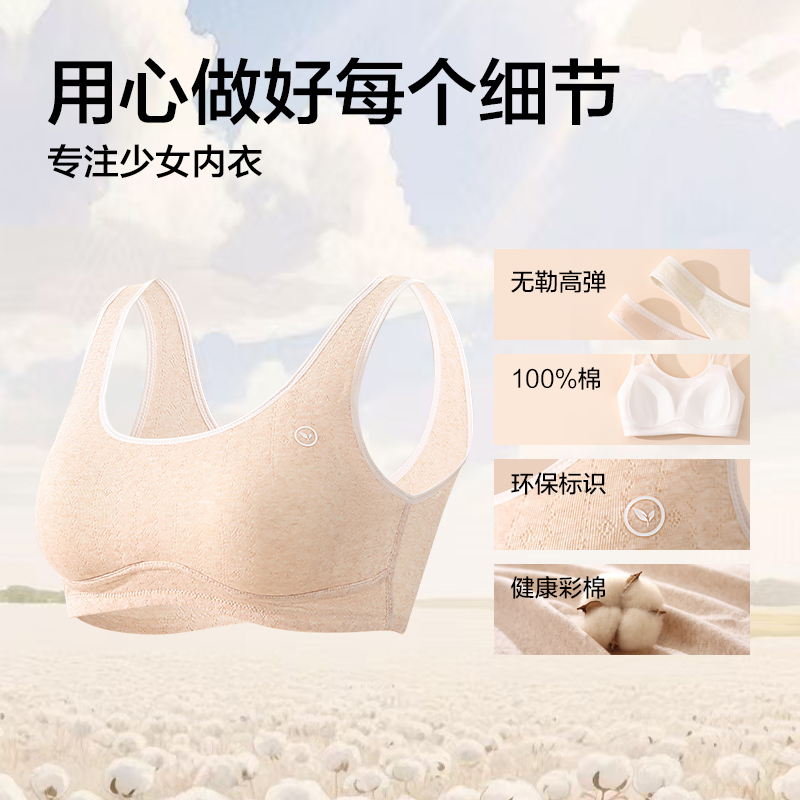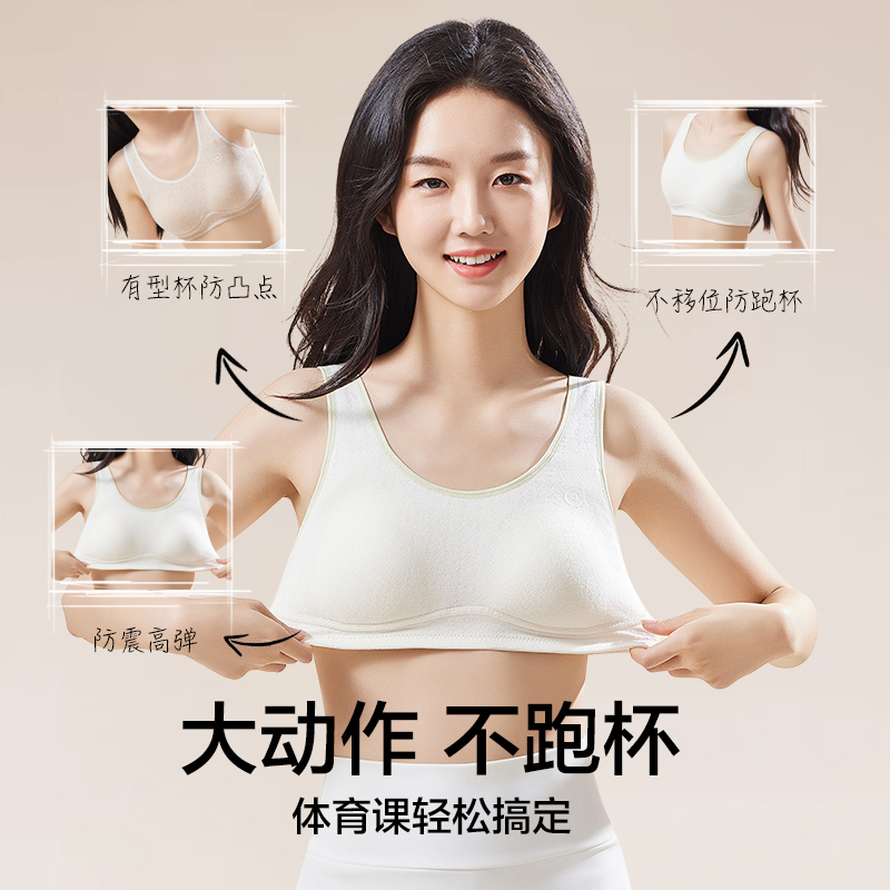 猫人发育期少女内衣纯棉学生青少年定型文胸初高中生女孩运动背心