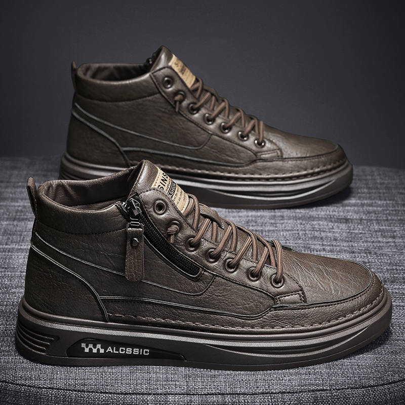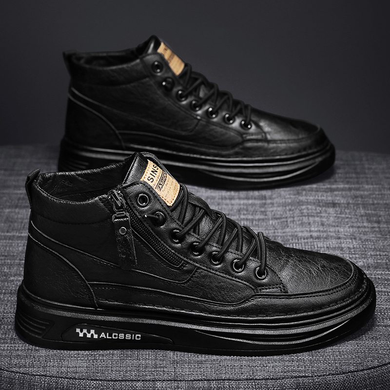 防水防滑黑色耐磨上班休闲皮鞋 劳保男鞋 男士 厨房工作干活板鞋 秋季