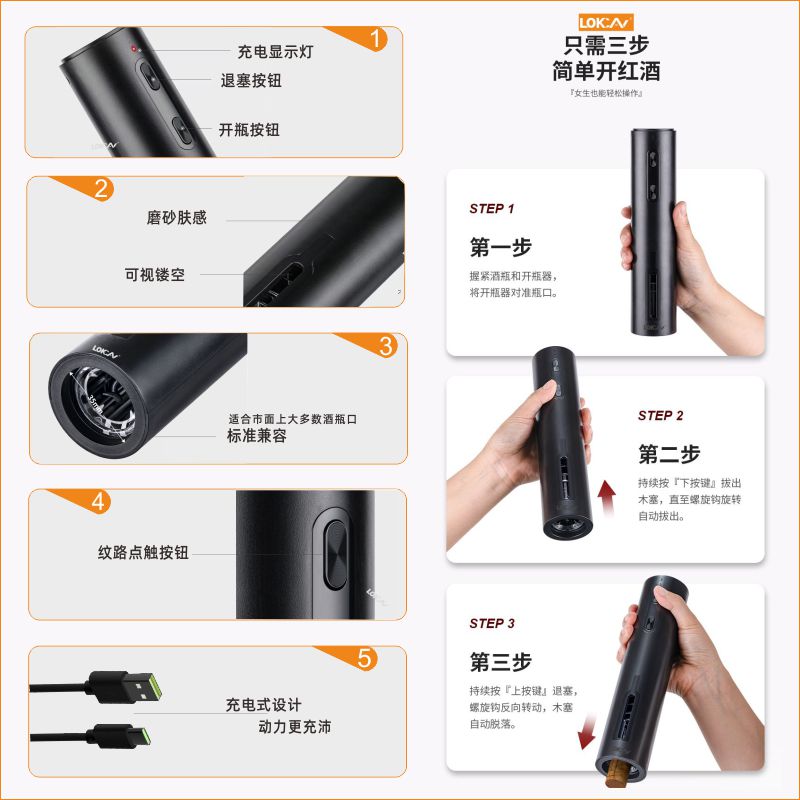 黑武士电动红酒开瓶器葡萄酒全自动酒具起子套装 便捷装