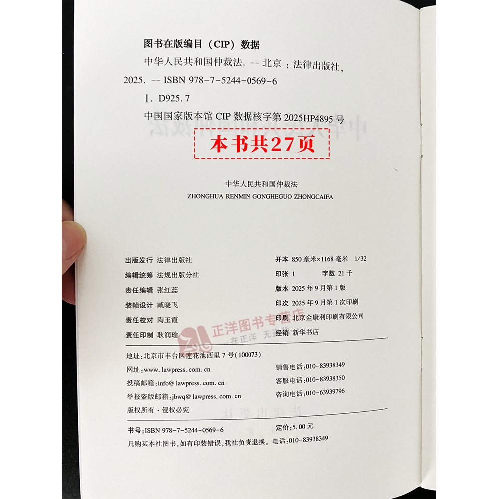 中华人民共和国仲裁法 附修订草案说明 单行本 正版 法律出版 修订版 仲裁法全部法条内容 社9787524405696 2025最新