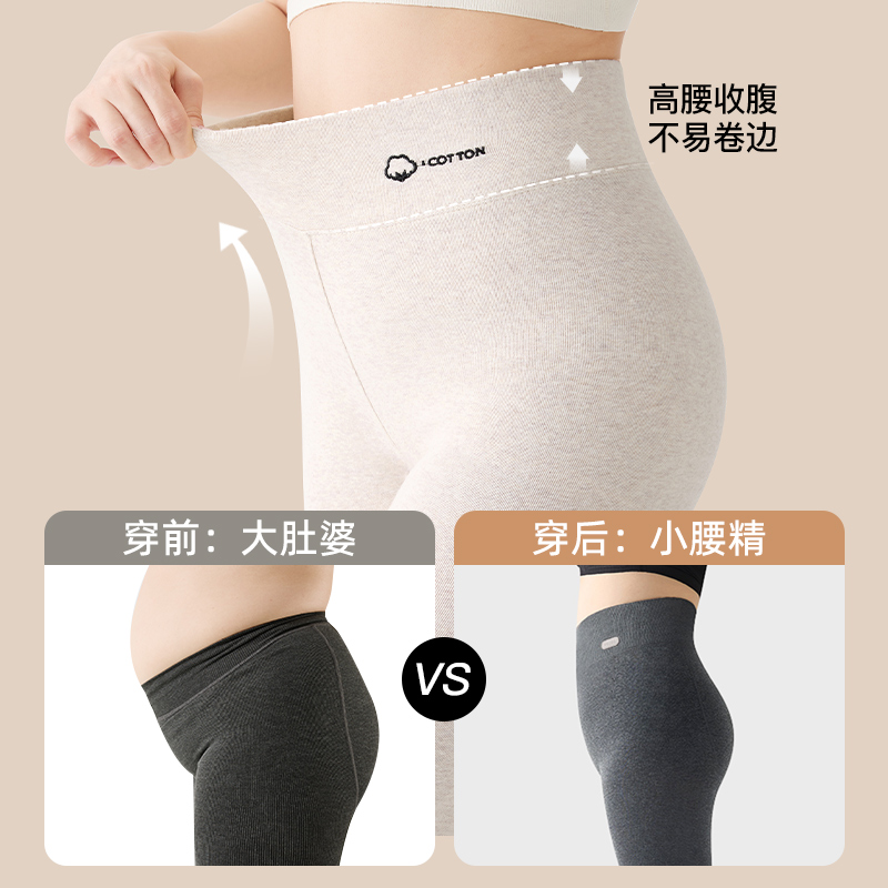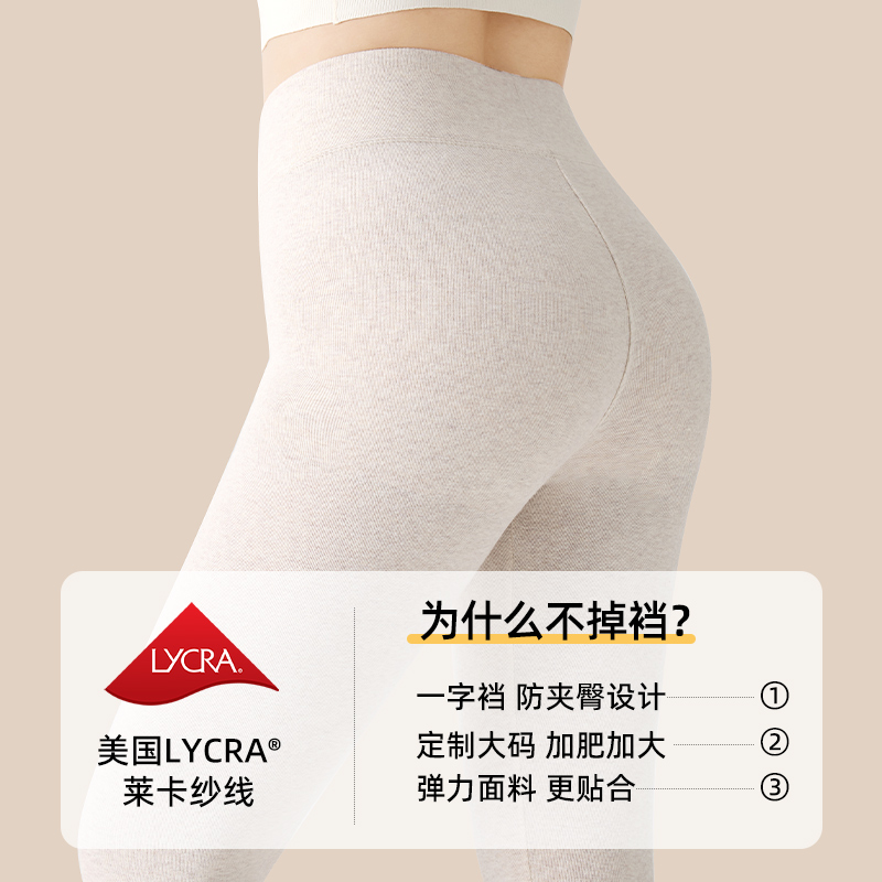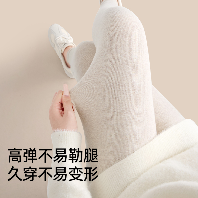 胖mm保暖燕麦色九分羊绒打底裤 女秋冬加绒2025新款 纯棉鲨鱼裤 大码