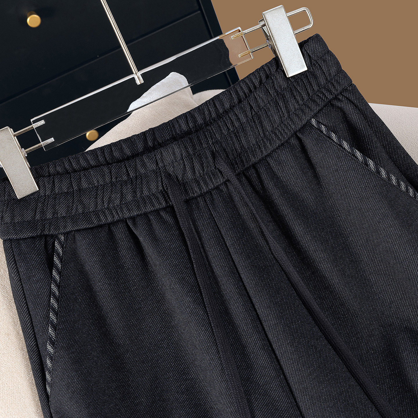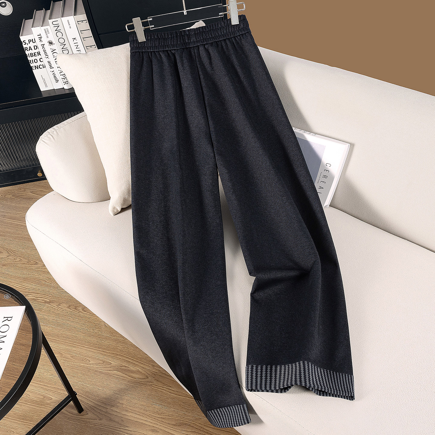 女装 新款 宽松款 条纹拼接长款 她池松紧腰休闲裤 显瘦阔腿裤 2025秋装