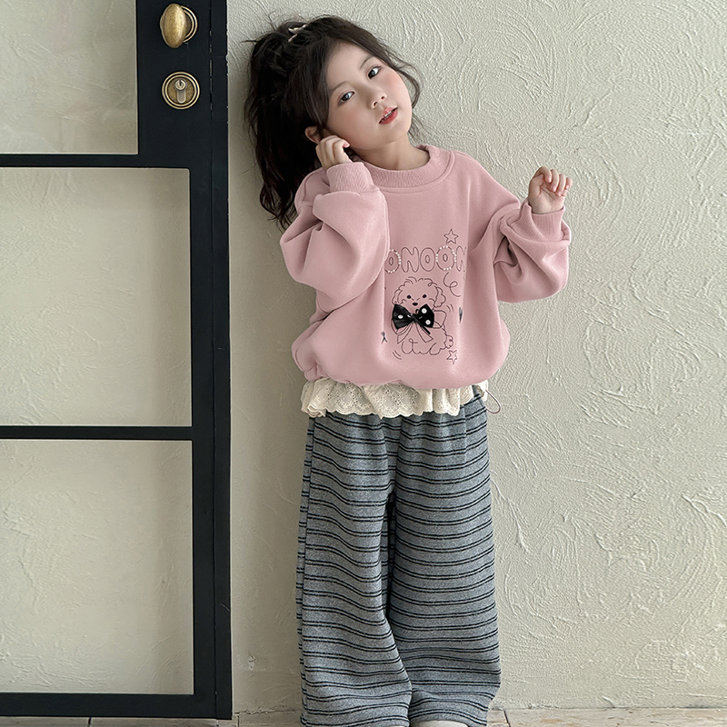 女童卫衣2025秋冬新款 一体绒超好看花边上衣 加绒加厚洋气儿童冬装