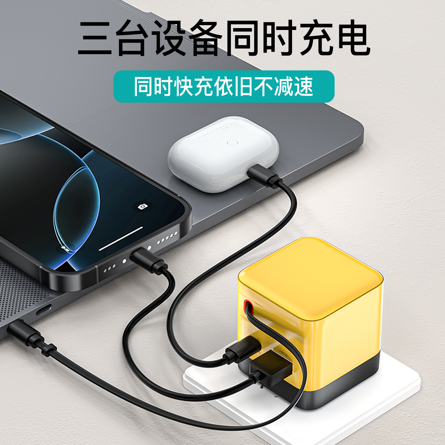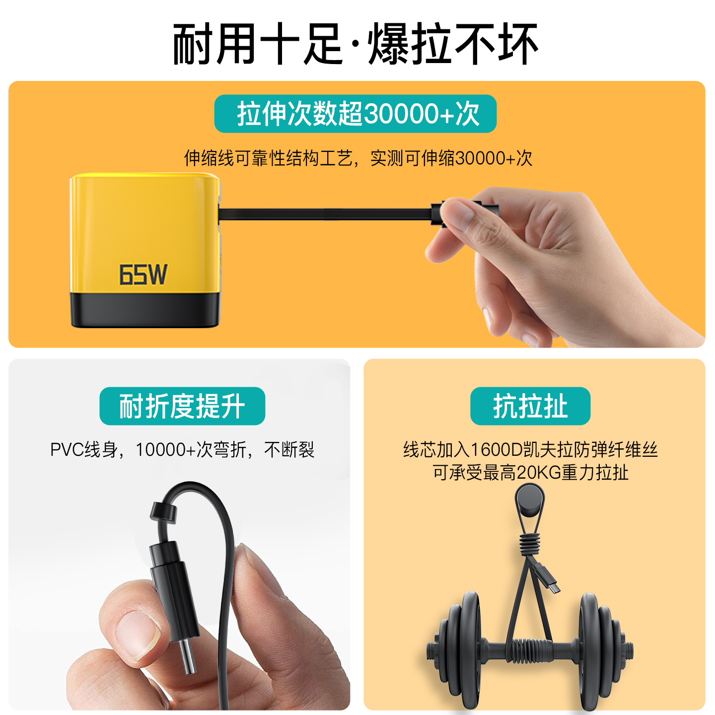 爵位65W氮化镓GaN充电器PD快充头笔记本电脑适用华为苹果安卓自带伸缩线一体直多口插头 iPhone17首选
