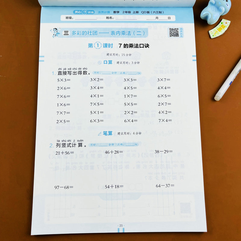 米 青岛版 计算2年级上学期同步练习册表内乘法表内除法厘米 小学数学活页计算二年级上册教材同步口算竖式 认识 六三制2025新版