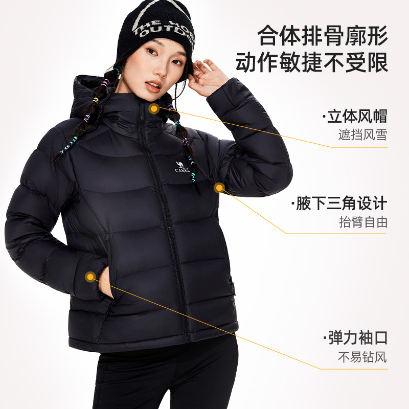 骆驼轻薄羽绒服男冬季 运动排骨羽绒休闲立领保暖鸭绒内胆外套女