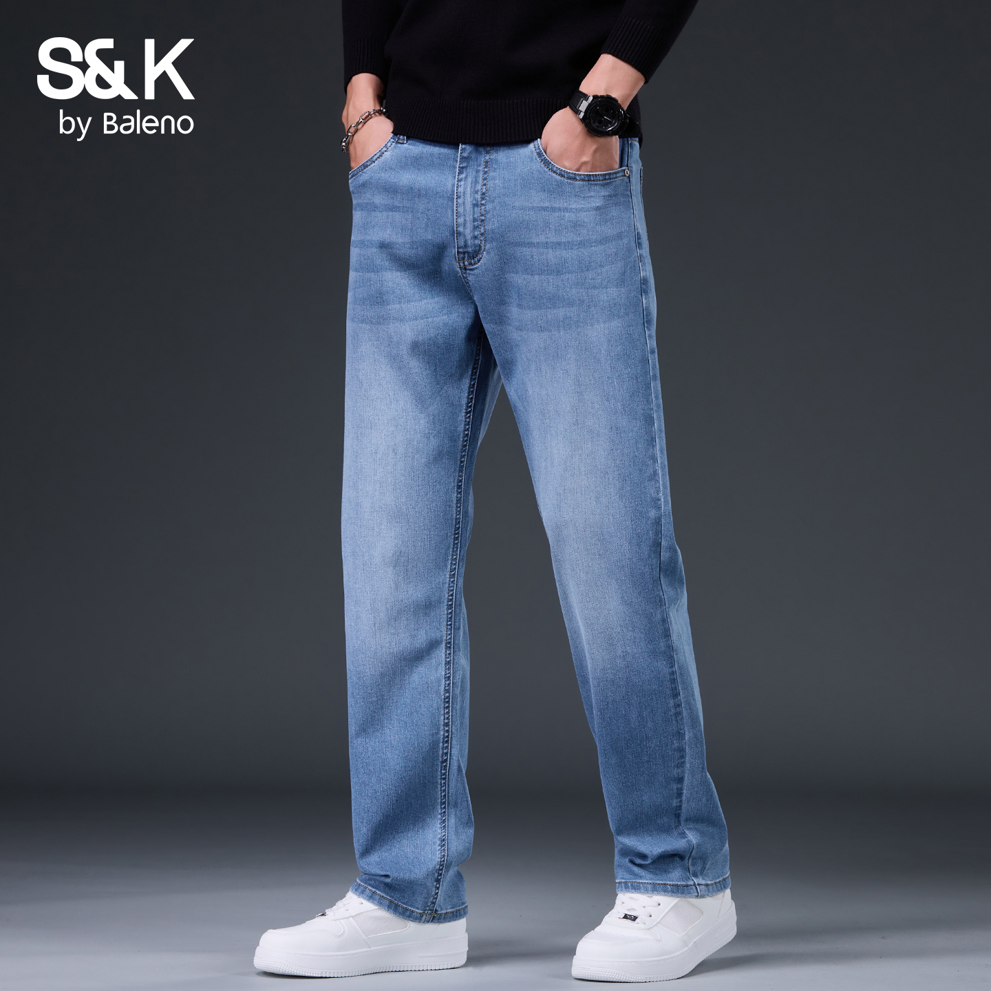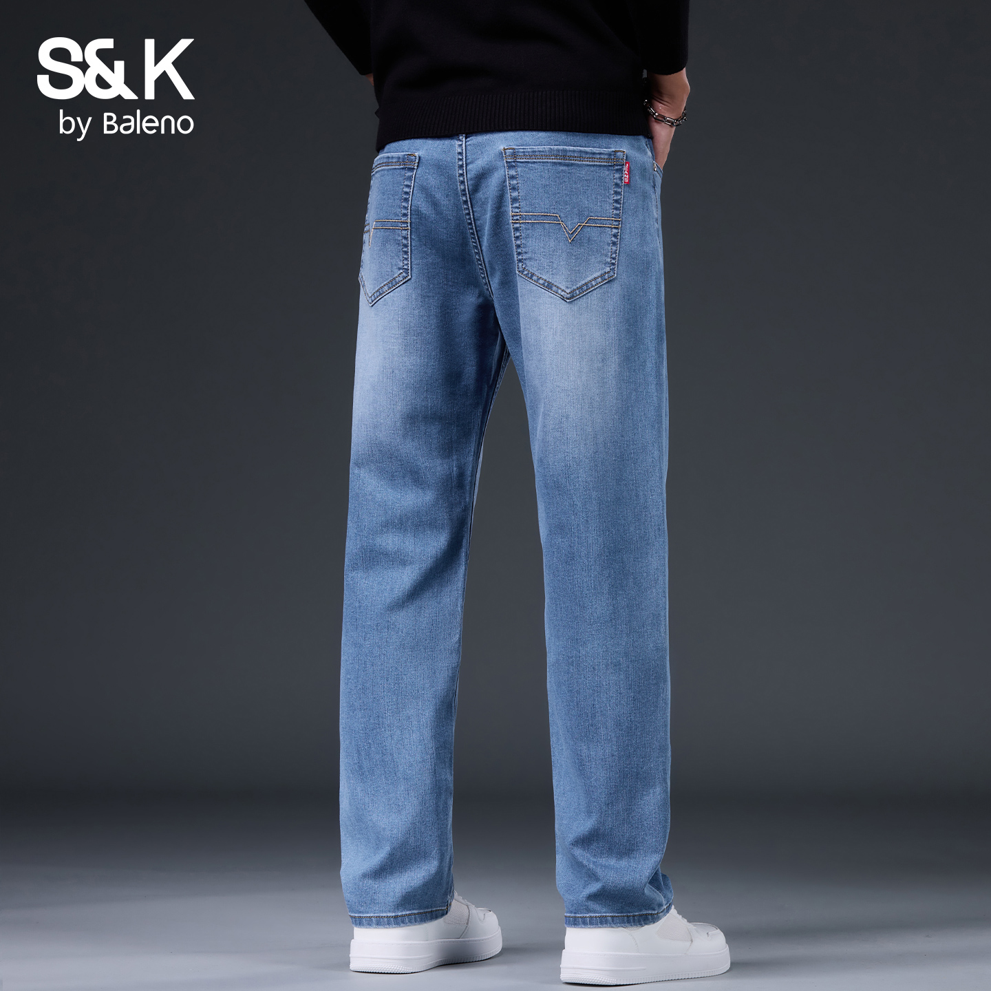 裤 三福2025冬季 休闲宽松直筒长裤 洗水仿针织牛仔裤 子510086 男士