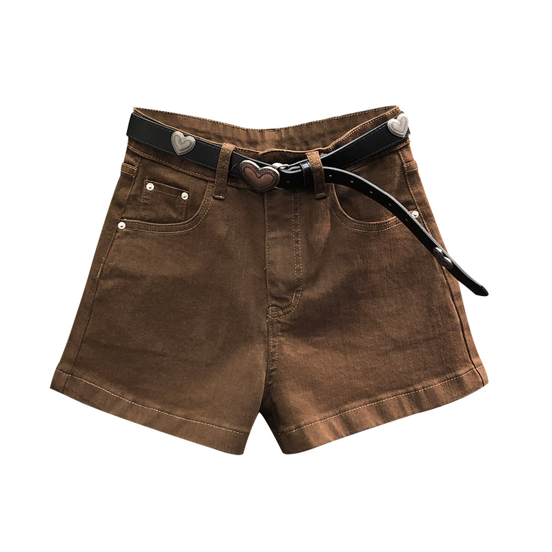 潮 宽松休闲弹力A字卷边阔腿热裤 咖色高腰牛仔短裤 女2025秋冬时尚