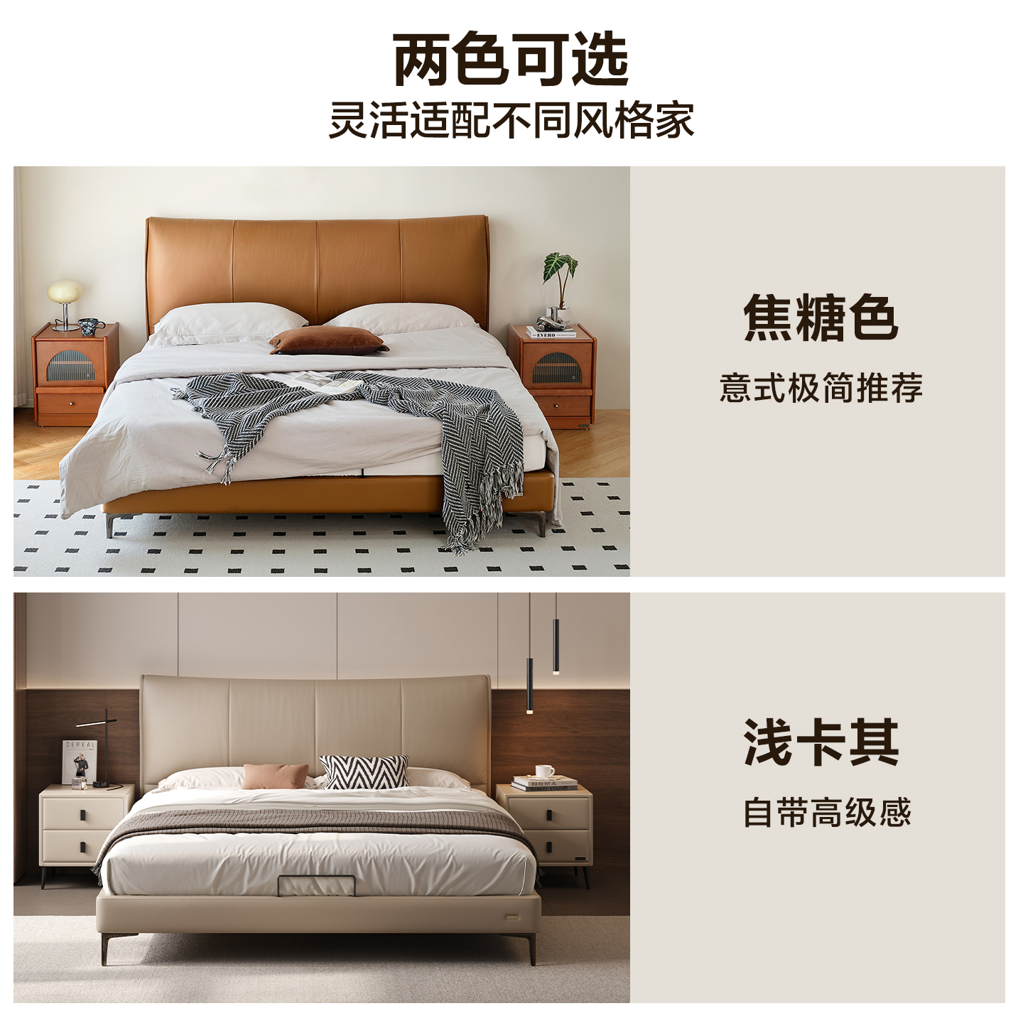 全友家居意式 轻奢真皮床复古风主卧室香奈儿软包双人大床2025新款
