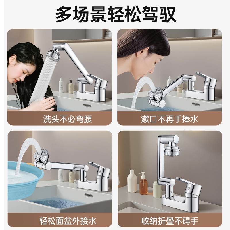 洗脸盆水龙头全铜卫生间水龙头冷热水二合一万向头双孔面盆水龙头
