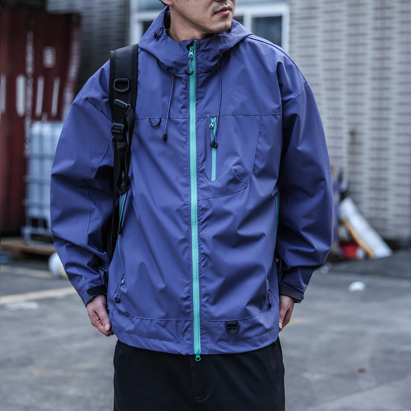 2025春秋户外徒步山系工装 连帽冲锋运动外套男宽松休闲夹克男 薄款