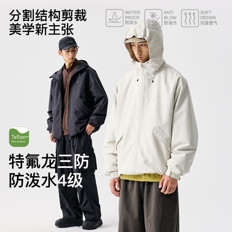 BENPANDA 早秋宽松休闲夹克上衣 户外机能三防连帽冲锋衣外套男款