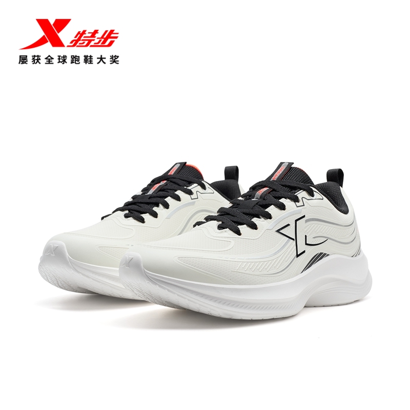 皮面防泼水减震女子跑鞋 特步波浪鞋 黑色运动鞋 男秋冬新款 跑步鞋